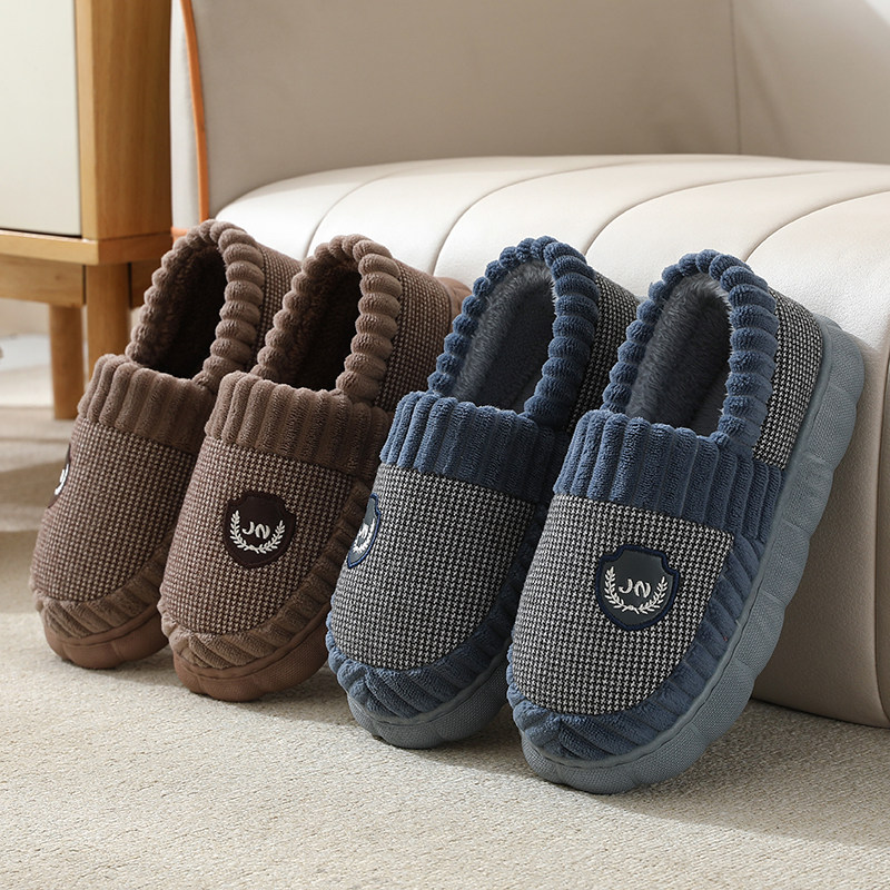 洁丽雅男士棉拖鞋冬季2025家居保暖加绒拖鞋女款防滑居家棉毛绒