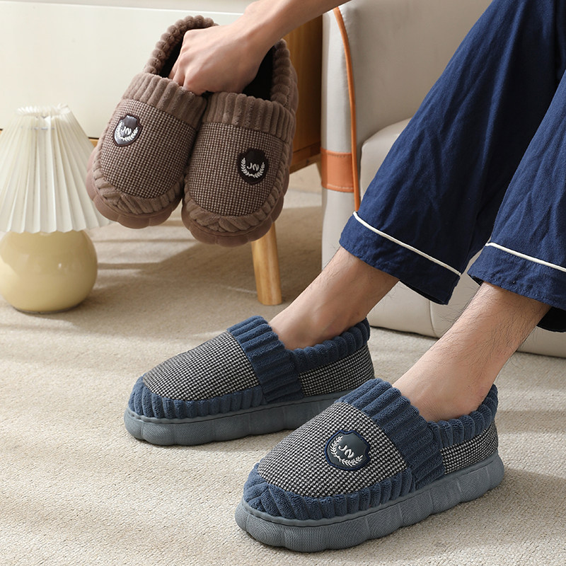 淘宝包跟棉拖鞋男士冬季家居家用加厚加绒厚底防滑保暖带跟棉鞋冬天女