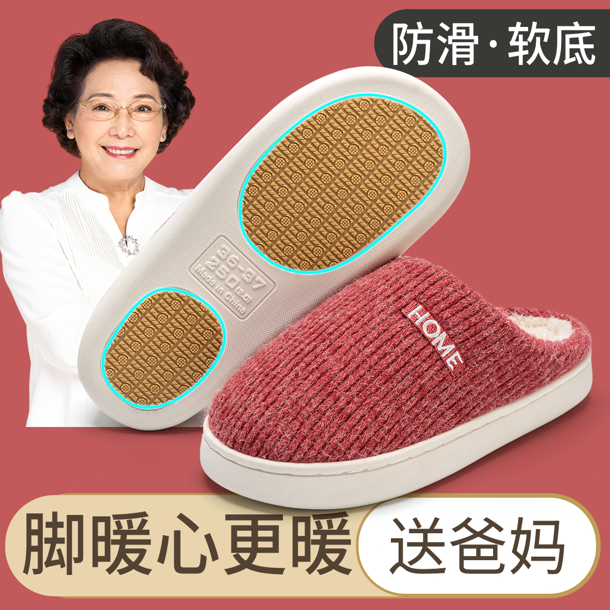 天猫防滑棉拖鞋女款老年人冬季2025新款室内家居保暖妈妈红色拖鞋男士