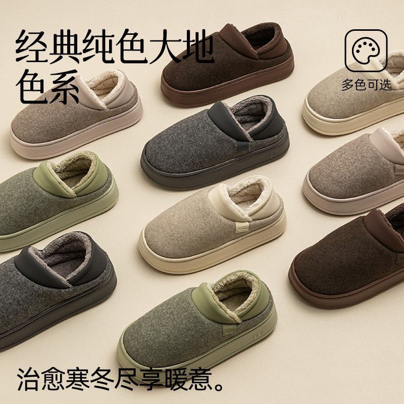 天朴西青春记忆棉鞋冬季防滑加绒包跟保暖居家棉拖鞋男女加厚外穿