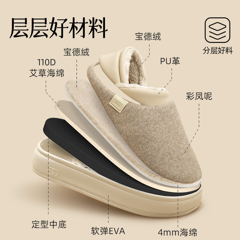 淘包跟棉拖鞋男士冬季家居家用加厚加绒厚底防滑保暖带跟棉鞋冬天女