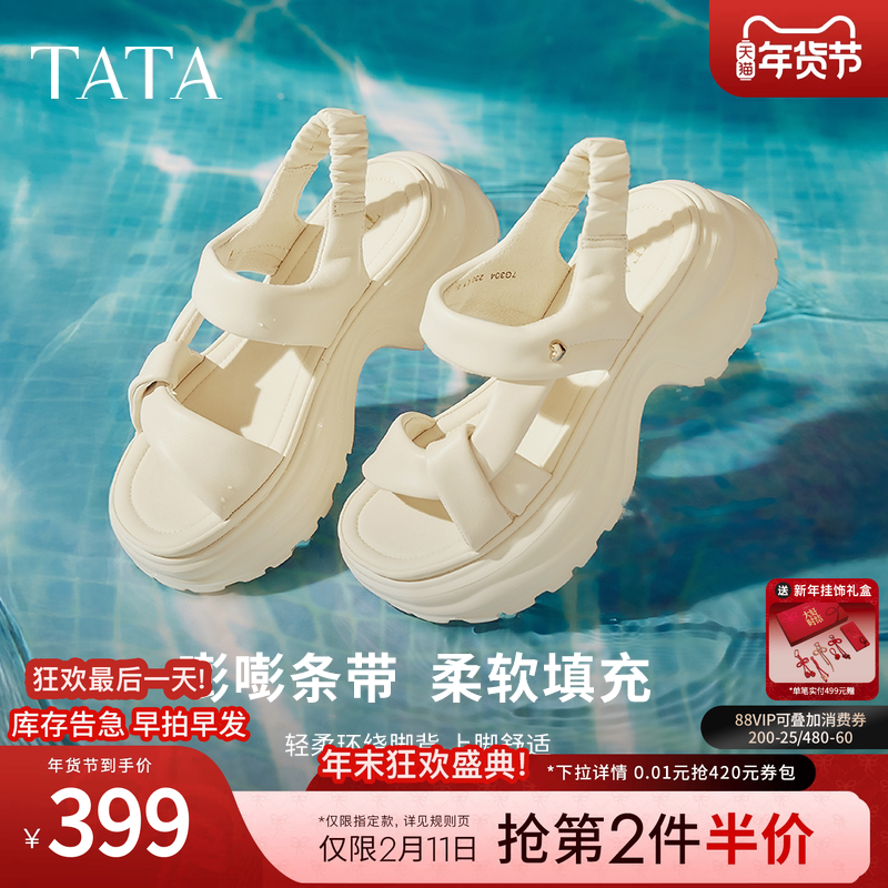天猫TATA他她休闲运动凉鞋女鞋厚底舒适沙滩凉鞋2025夏季新款7G304BL5