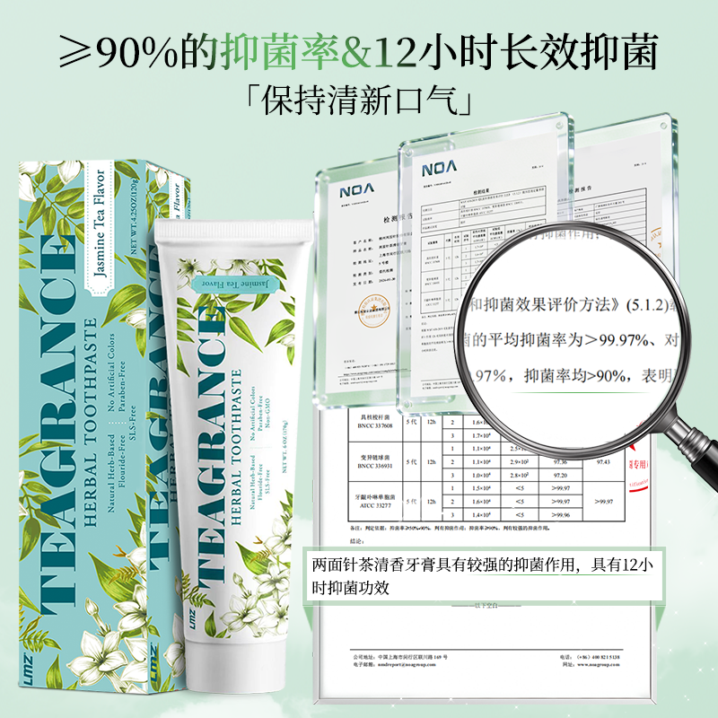 天猫两面针茶清香牙膏长效清新口气龙井茉莉不含氟sls清洁口腔无刺激