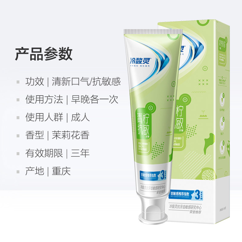 天猫冷酸灵牙膏青柠抗敏双重抗敏清新口气去牙渍防蛀去黄垢