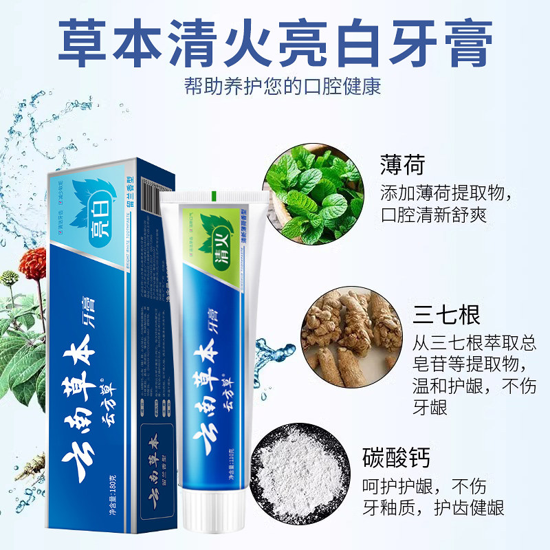 淘宝正品云南草本牙膏减轻牙龈问题亮白牙齿洁净口腔清新口气家庭装