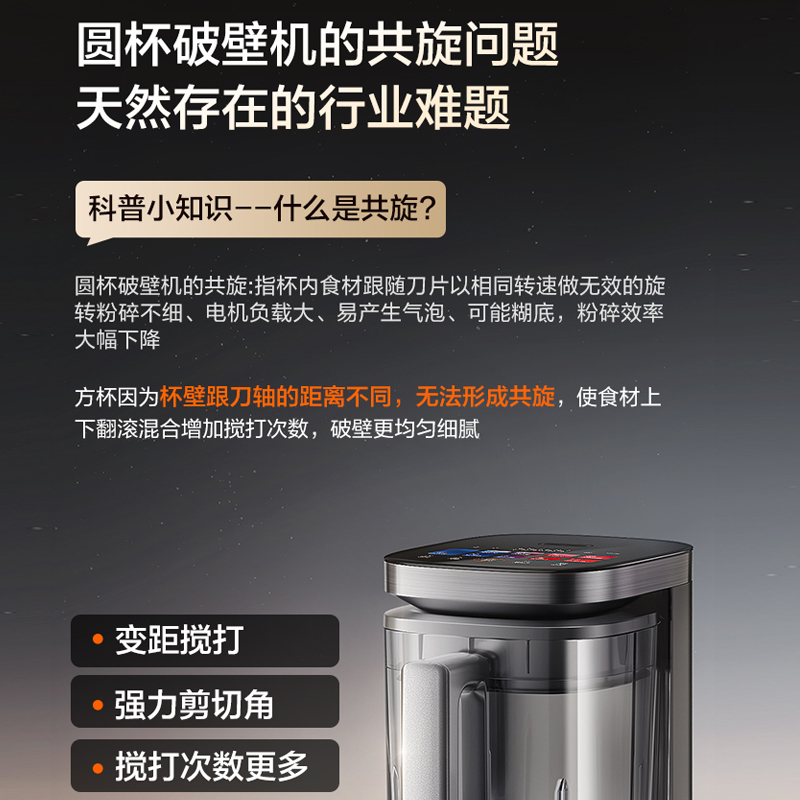 天猫【旗舰新品方形大师】苏泊尔破壁机家用小型低音0涂层智能料理机