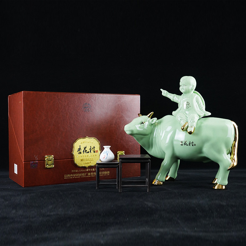 山西汾酒杏花村酒53度“牧童骑牛”纪念款,以经典唐诗“借问酒家何处有,牧童遥指杏花村”为灵感,采用传统清香型工艺酿制,酒体清澈透明,口感绵甜爽净,余味悠长。精选优质高粱、大麦、豌豆为原料,经地缸发酵、清蒸二次清等古法工序精制而成。1.5L大容量坛装设计,配以精美青花瓷坛与牧童骑牛主题图案,兼具艺术观赏与收藏价值。53度黄金酒精度,适合长期储存,越陈越香。此纪念款不仅传承千年酿酒文化,更承载深厚人文情怀,是馈赠、收藏、品鉴的上乘之选,彰显中华酒文化之精髓。