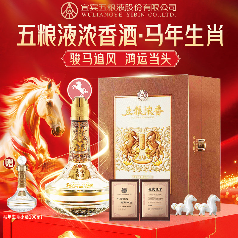 【年度新品】五粮浓香 马年生肖纪念酒888ml 丙午年送礼收藏封酒