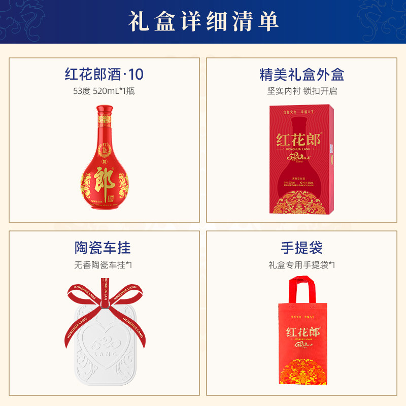 天猫郎酒 红花郎酒10 酱香型白酒 53度 520mL 单瓶礼盒装2盒 收藏送礼