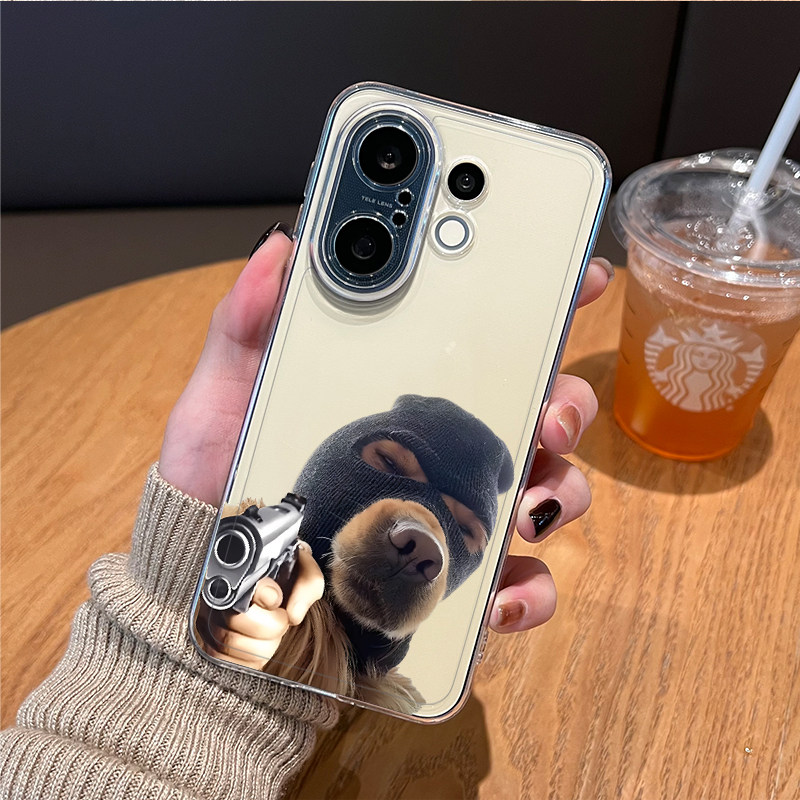 天猫举枪小狗狗手机壳适用vivos30promini透明20pro情侣s50搞怪19新款18趣味17简约创意16por线条男女15外壳超火