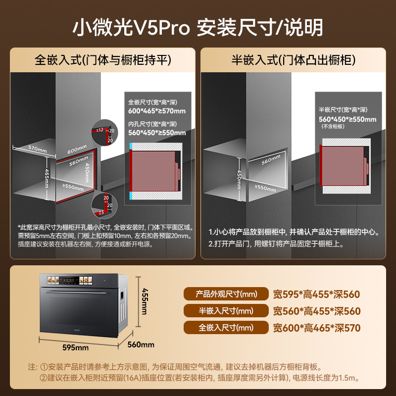 华帝小微光V5Pro微蒸烤一体机是一款集8大功能于一体的嵌入式厨房电器,融合微波、蒸汽、烘烤、发酵、解冻、消毒、烘干及组合烹饪模式,满足多样化烹饪需求。采用先进热风循环与直喷蒸汽技术,实现均匀加热与鲜嫩口感,保留食材营养。智能触控面板搭配多重预设菜单,操作简便,一键即可轻松烹饪。紧凑嵌入式设计节省空间,适配现代厨房风格。不锈钢内胆易清洁,配备童锁与过热保护,安全省心。无论是蒸鱼、烤鸡、烘焙还是快速加热,V5Pro都能高效胜任,是追求品质生活家庭的理想选择。