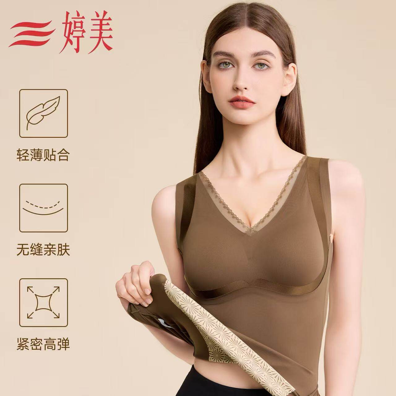 淘宝婷美6899塑身保暖背心女带胸垫一体内衣新款秋冬塑身上衣修身美体