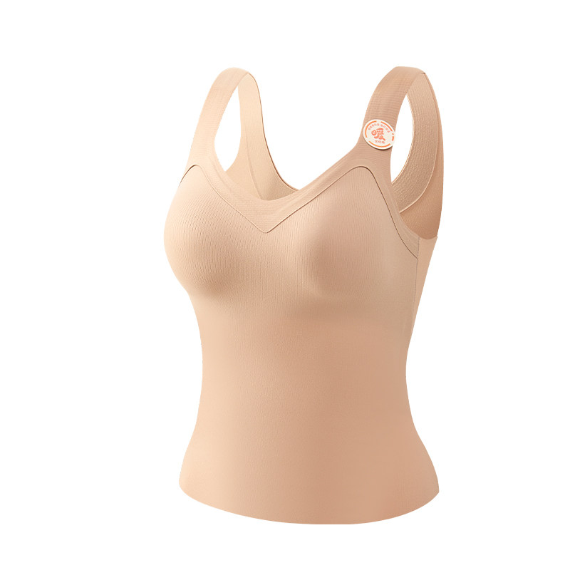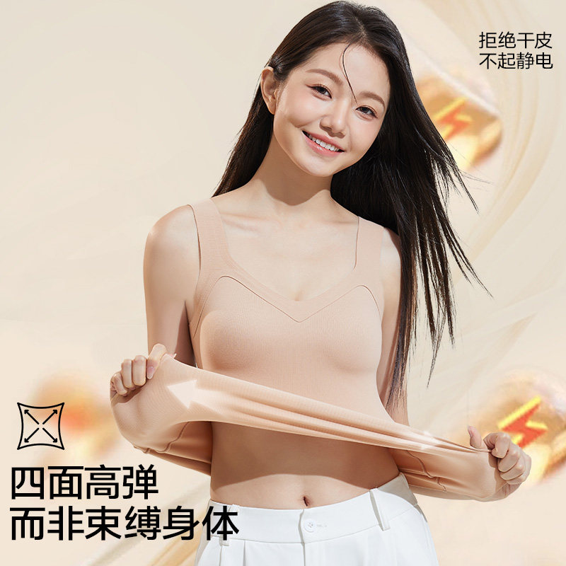 天爱美丽磨毛保暖背心秋冬新款含羊毛带胸垫免穿内衣打底防寒内搭女