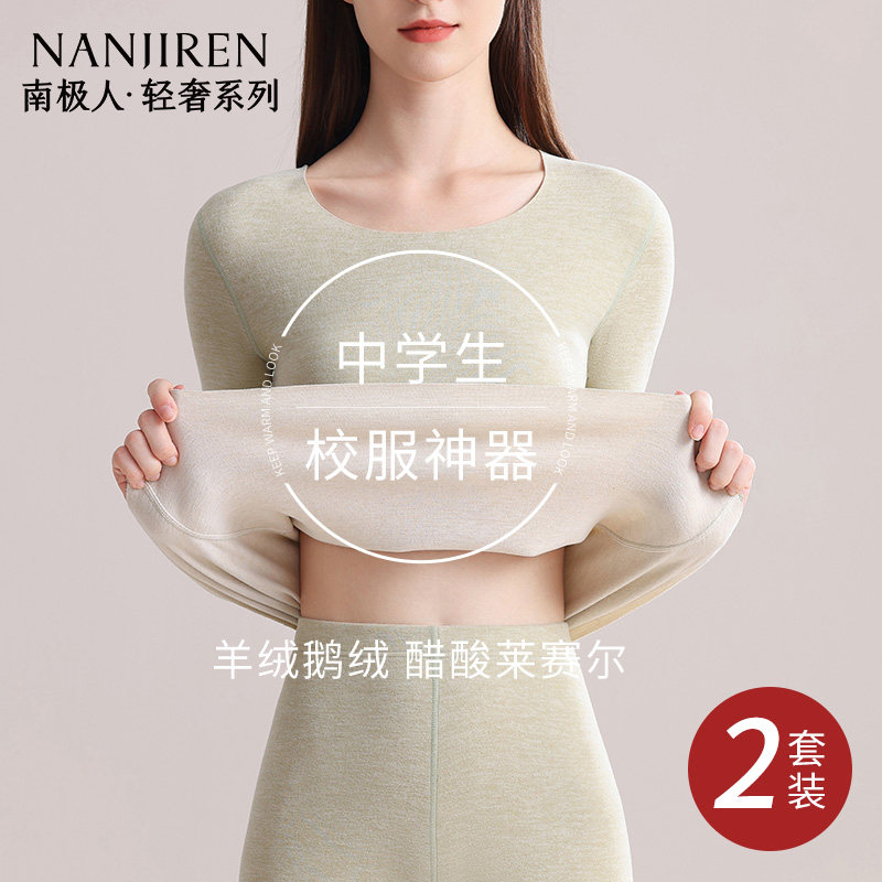 天猫南极人青少年秋衣秋裤女款绒德保暖内衣套装初高中生女士薄款冬季