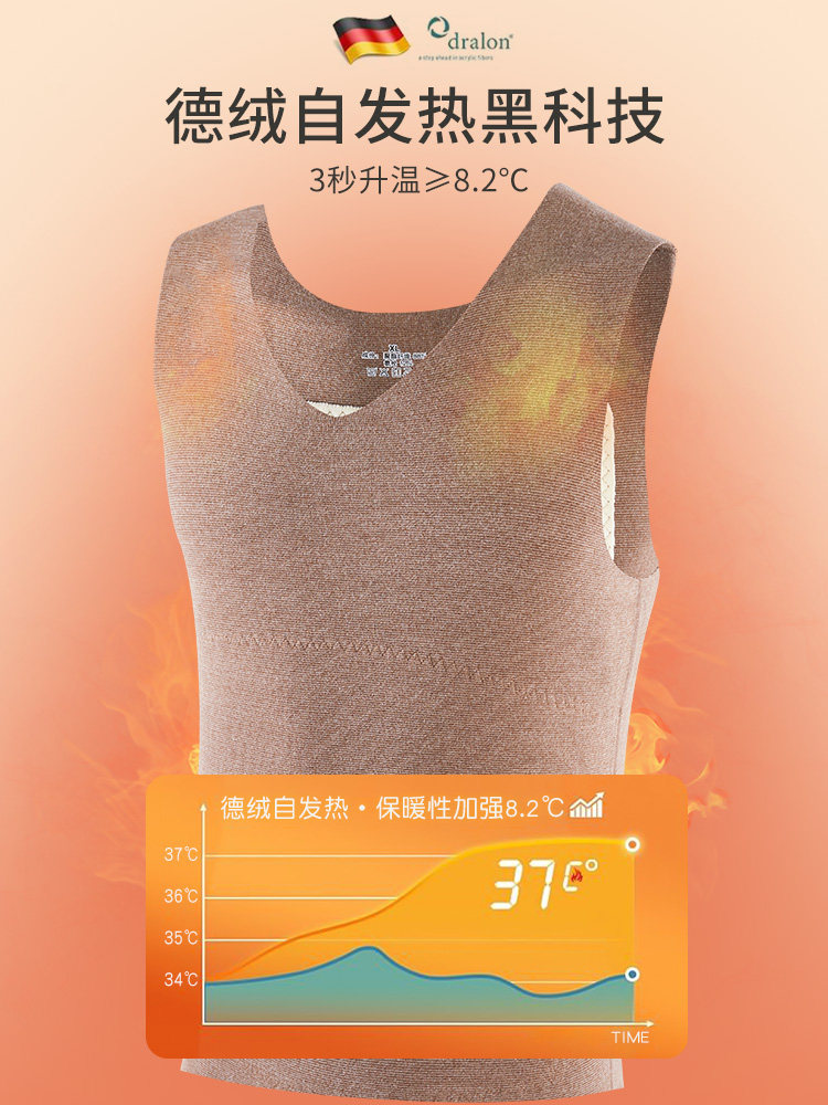 淘蕉内热皮501+男女士保暖背心秋衣打底外穿无袖隐形裸感保暖内衣