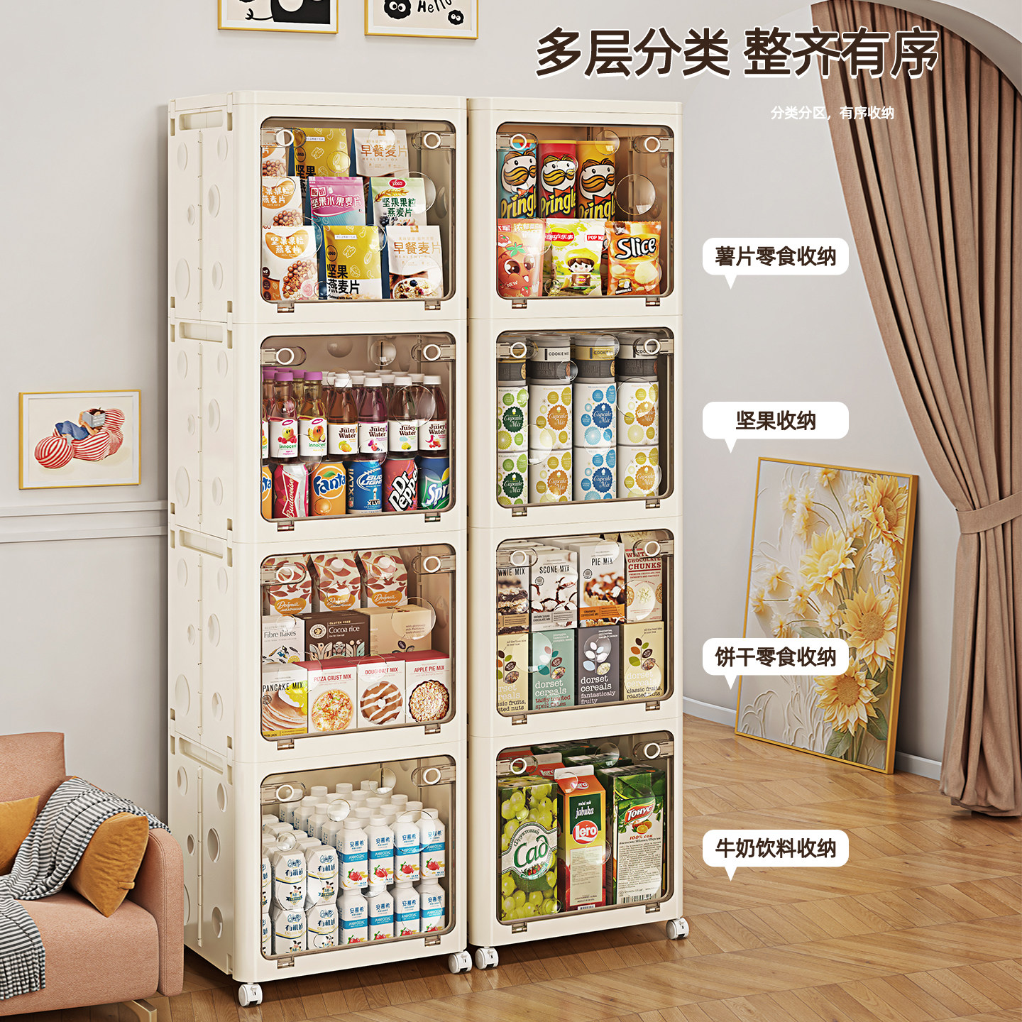 零食收纳柜家用多层免安装储物柜子可移动塑料儿童衣服折叠置物柜