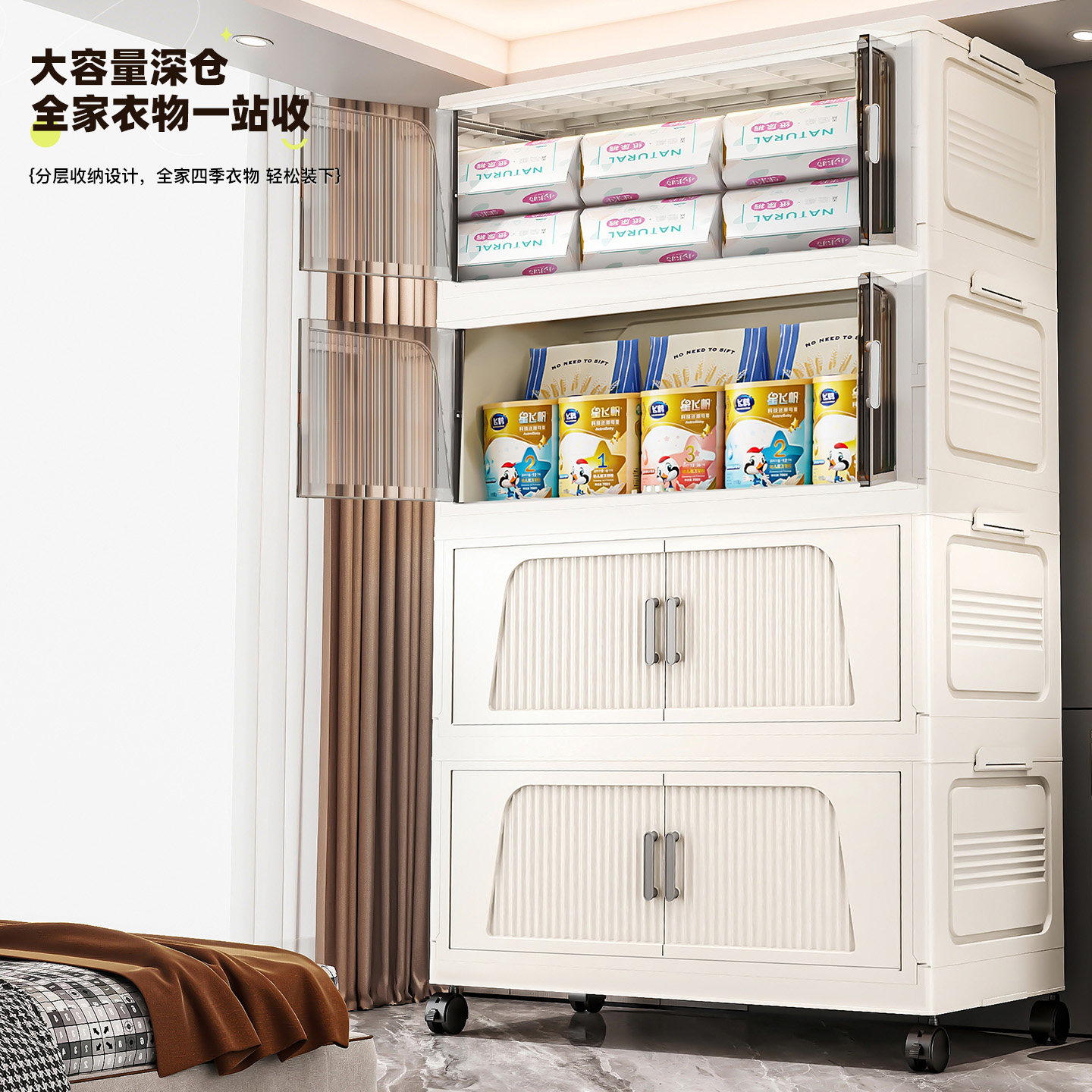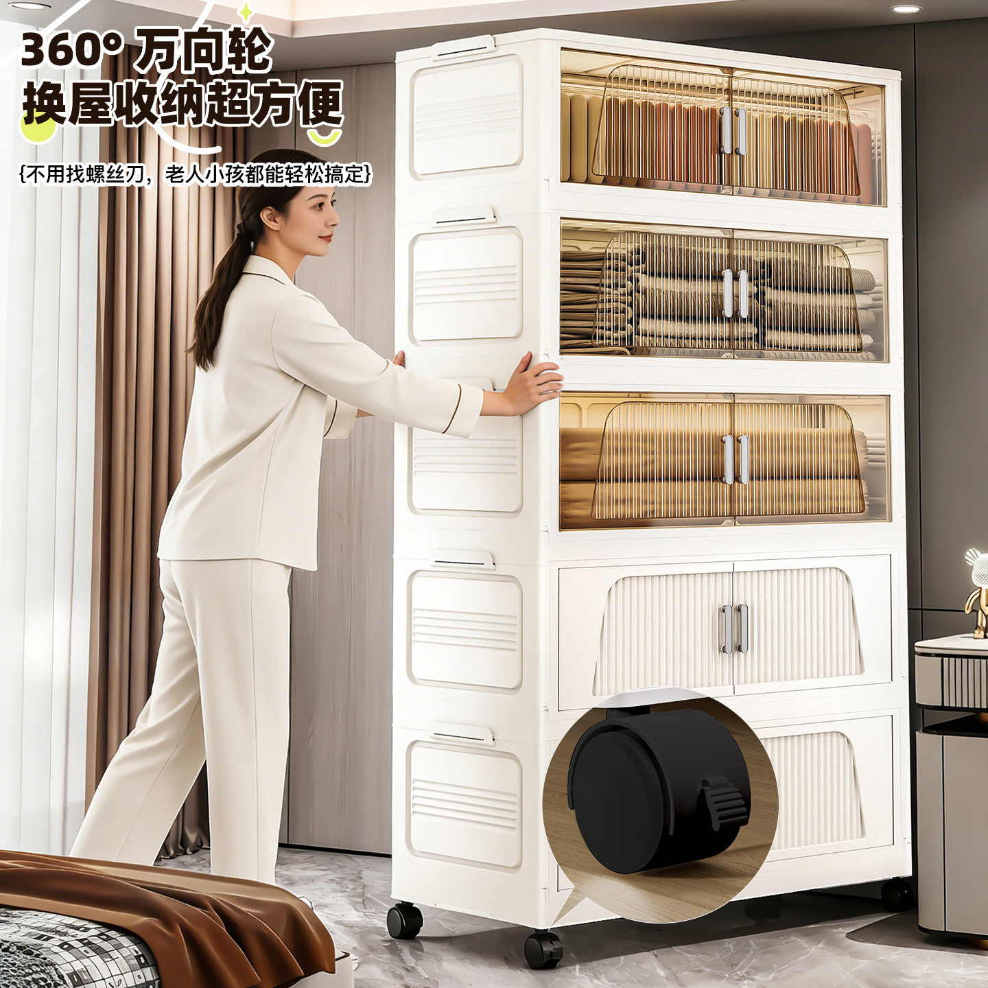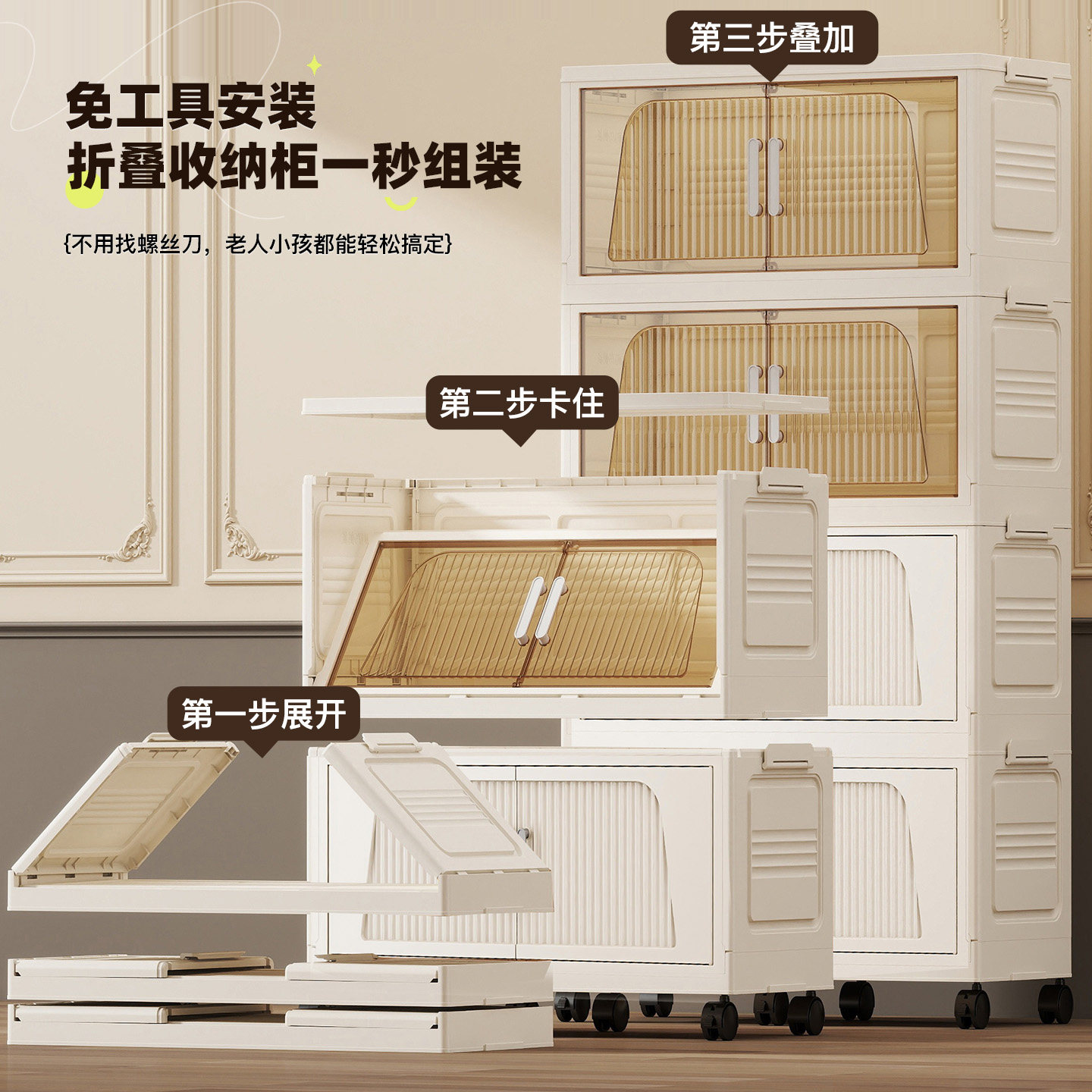 天折叠家用收纳柜子置物柜加厚客厅卧室储物柜带轮免安装塑料零食柜