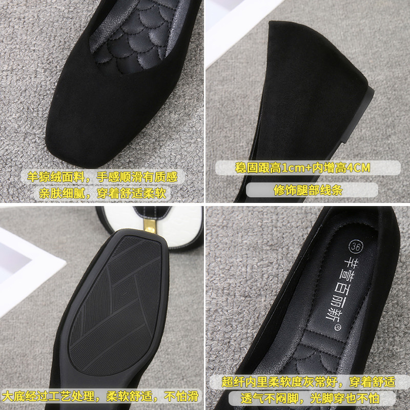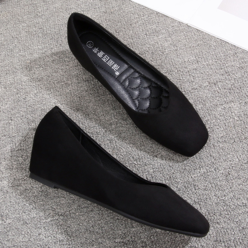 淘宝工作鞋女久站不累脚黑色防滑新款舒适软底上班布鞋绒面坡跟单鞋春