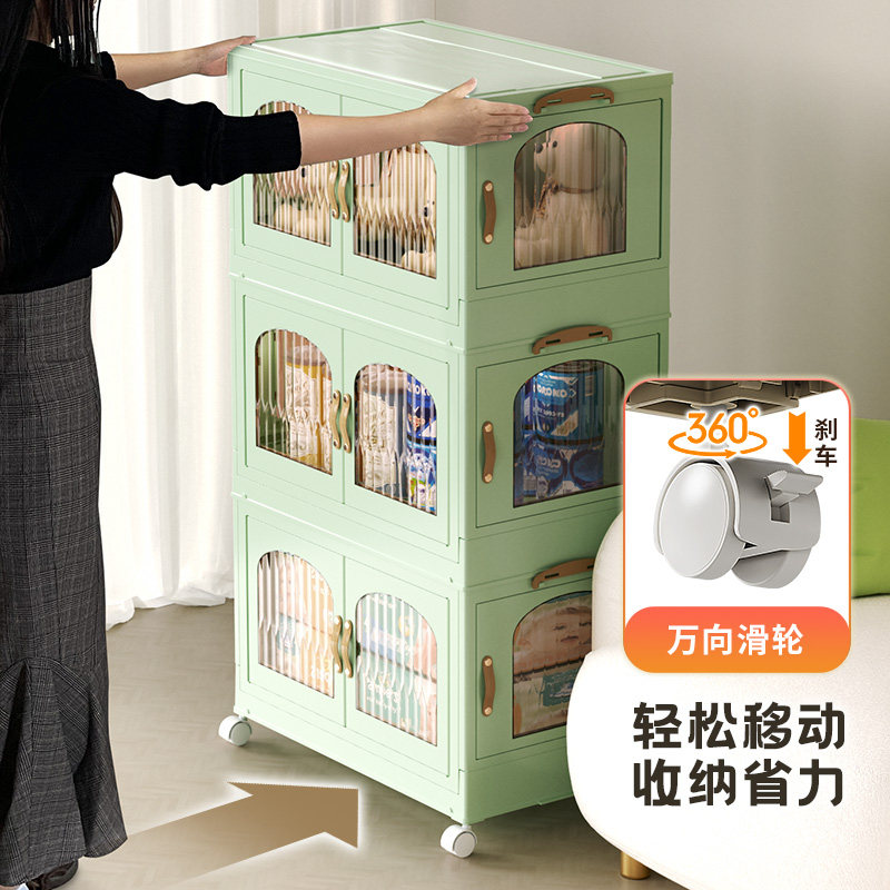 折叠收纳柜厨房置物架多层家用储物柜子客厅零食玩具免安装整理架