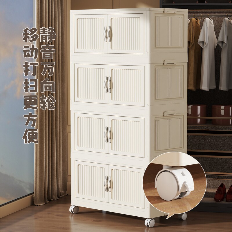 折叠储物柜家用客厅免安装收纳柜卧室宝宝衣柜多层婴儿带轮小衣橱