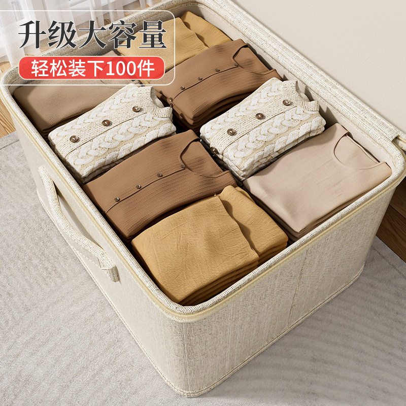 天猫天山棉麻衣服收纳箱家用大容量衣柜装衣物整理盒折叠带盖储物盒子