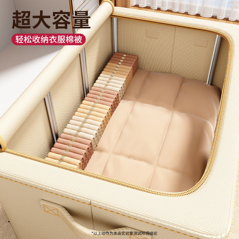 新款大容量家用折叠整理箱,采用优质布艺材质,结实耐用又防尘防潮,是衣物、被子等换季收纳的理想选择。箱体设计科学,容量大却不占空间,不用时可轻松折叠收纳,节省家居空间。加高加宽设计,轻松容纳棉被、毛衣、床单等大件物品,搭配透明视窗和双拉链开合,取物一目了然,方便快捷。底部加固支撑,承重力强,叠放稳固不变形。无论是放在衣柜、床底还是储物间,都能让家居环境整洁有序。这款布艺储物盒集实用、美观、便捷于一体,是现代家庭整理收纳的必备神器,让收纳变得更简单高效。