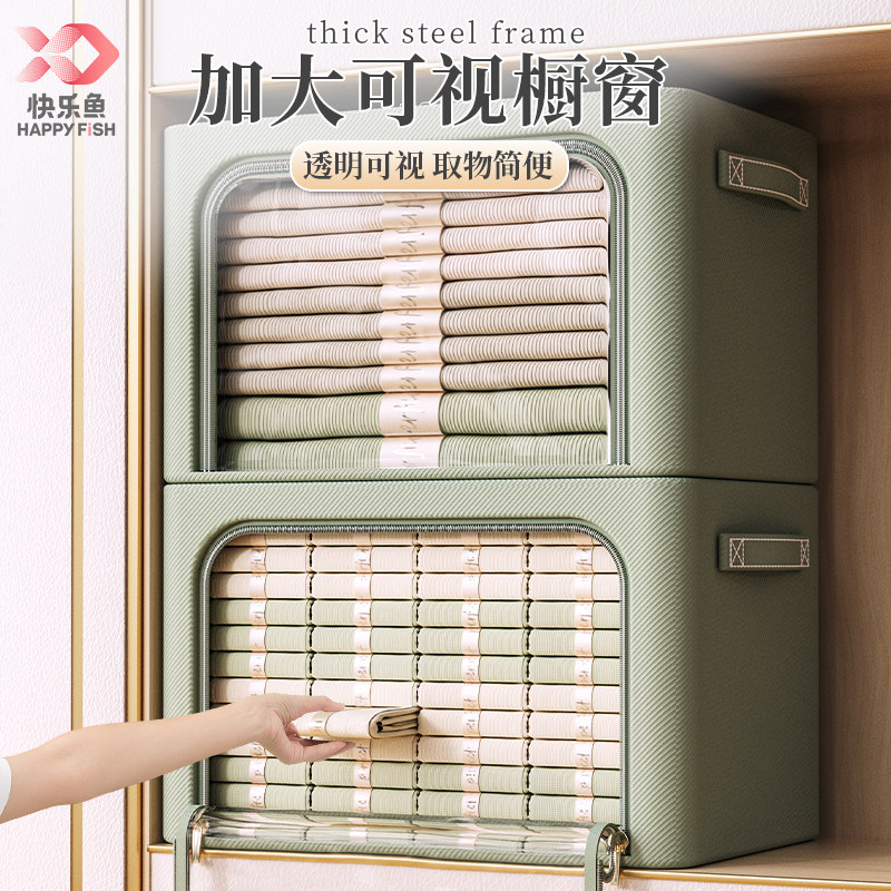 天猫快乐鱼衣服收纳箱家用衣柜分层放衣物整理盒可折叠储物筐神器箱子