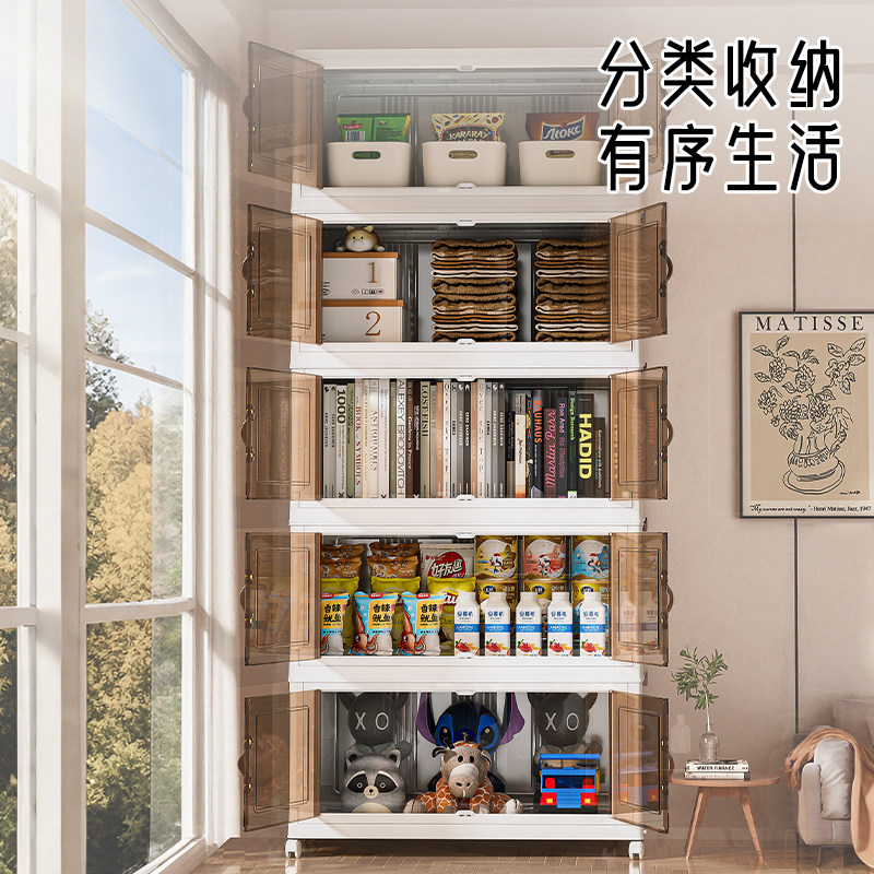 天零食收纳柜家用多层免安装储物柜子可移动塑料儿童衣服折叠置物柜