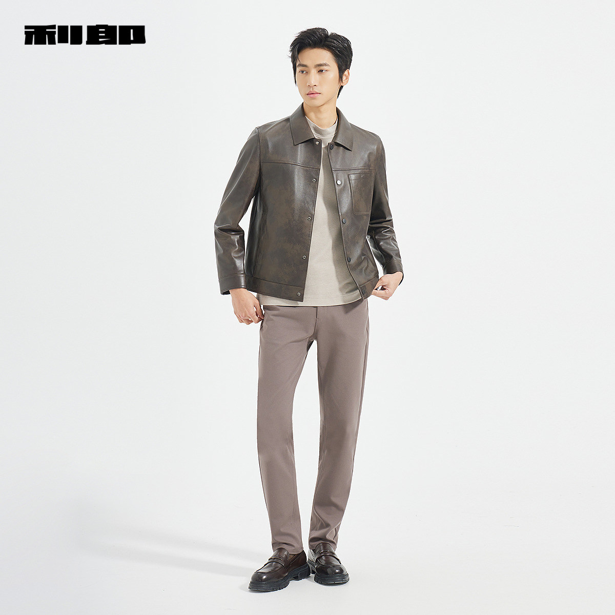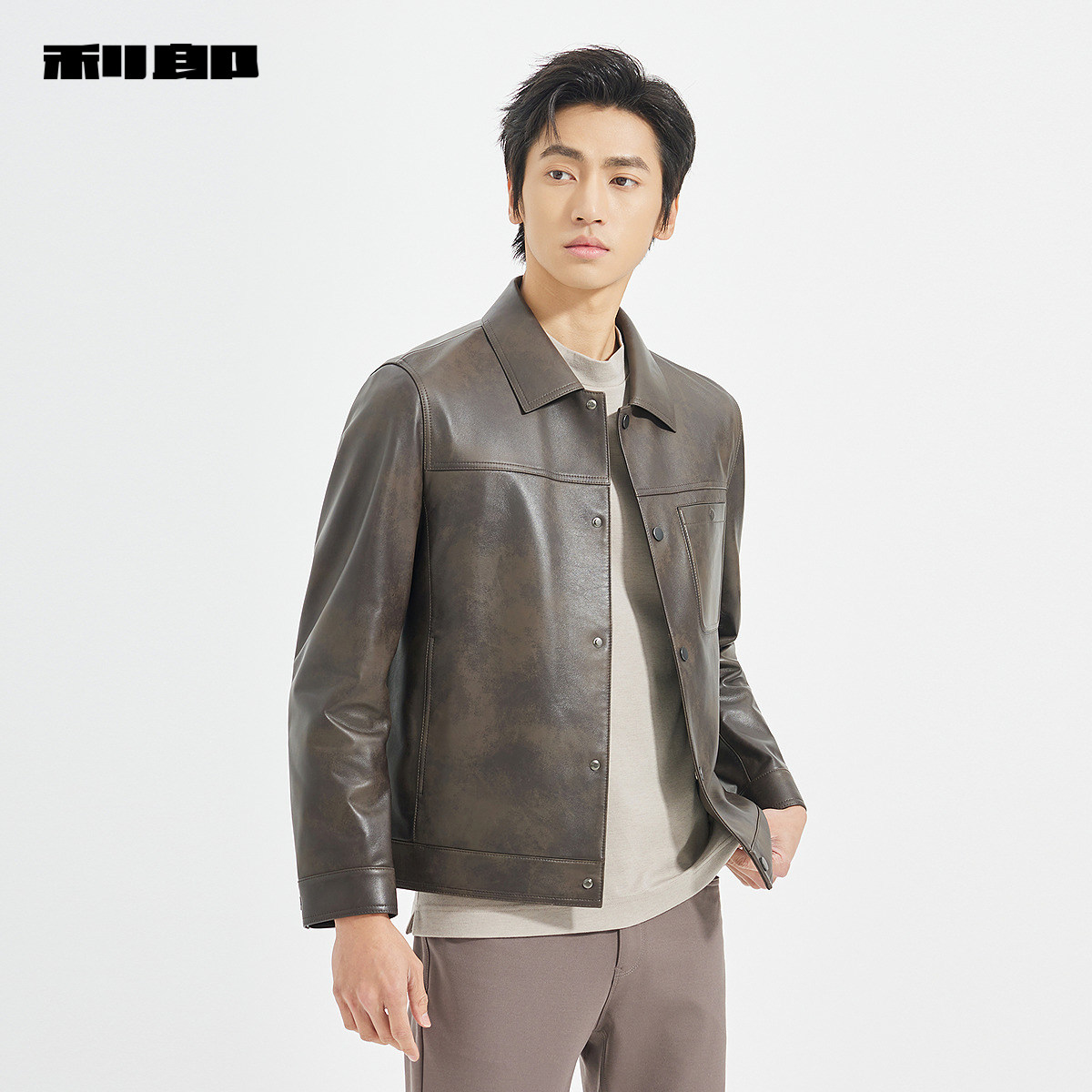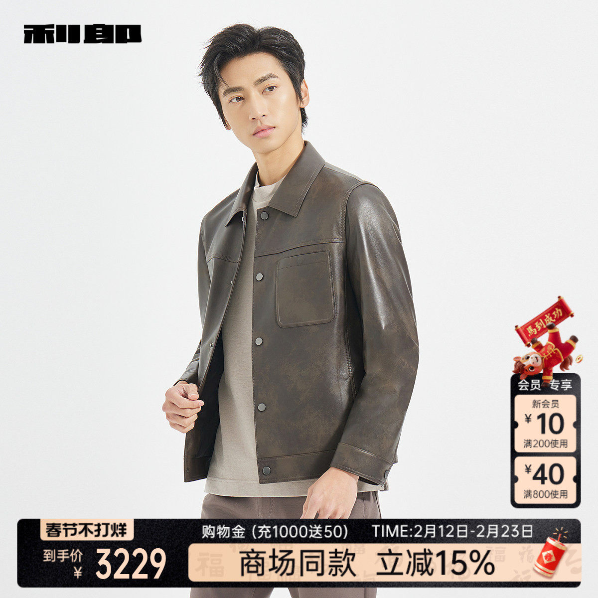 【绵羊皮】利郎绵真皮皮衣男商务休闲翻领25秋季新款夹克外套男装