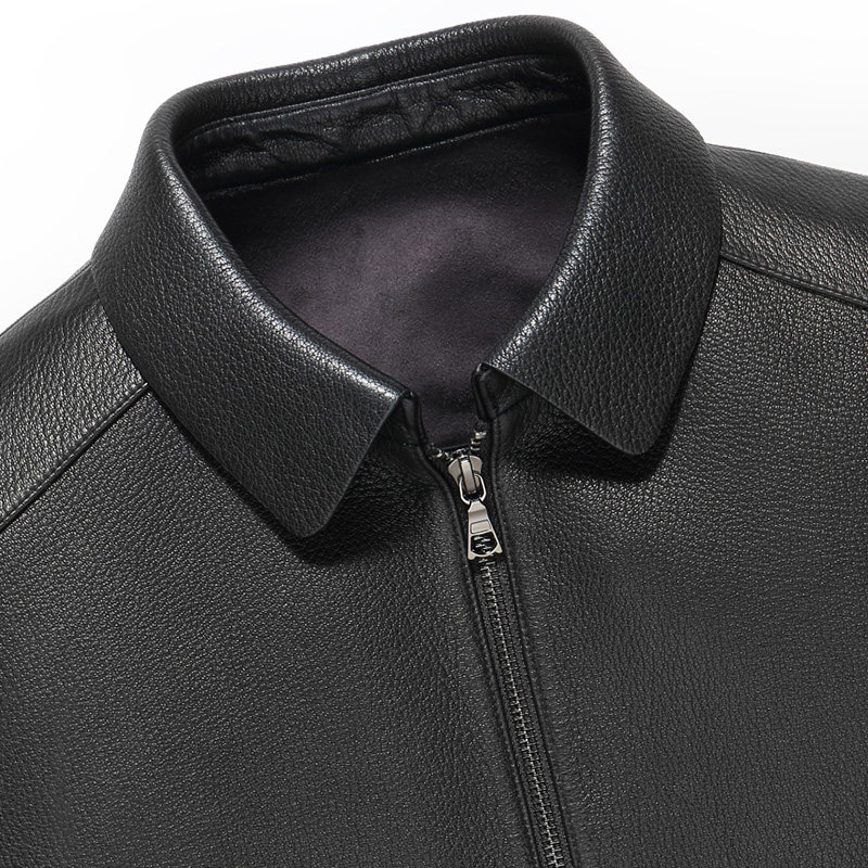 天猫雪豹头层鹿皮真皮皮衣外套男商务体制内翻领行政夹克【羽绒内胆】