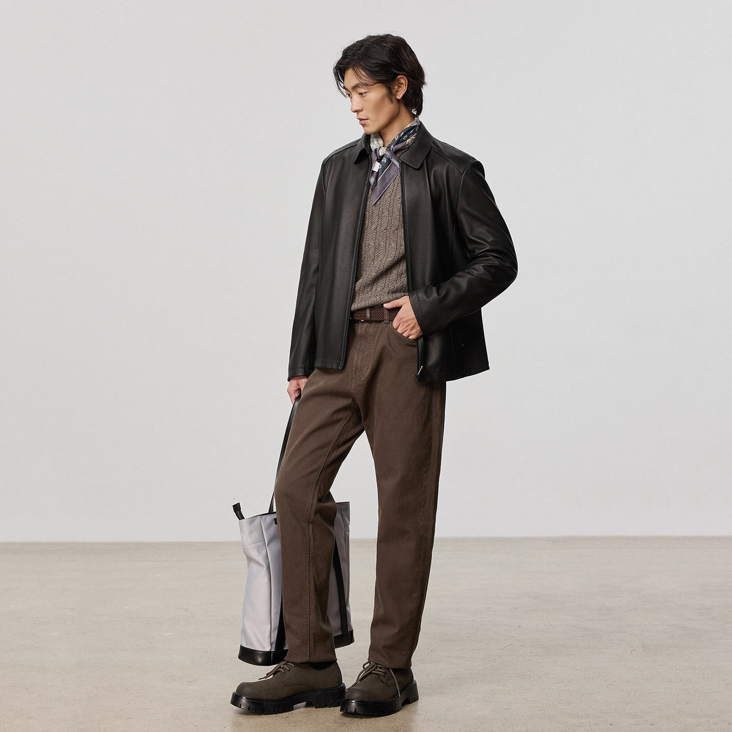 【绵羊皮】利郎绵真皮皮衣男商务休闲翻领25秋季新款夹克外套男装