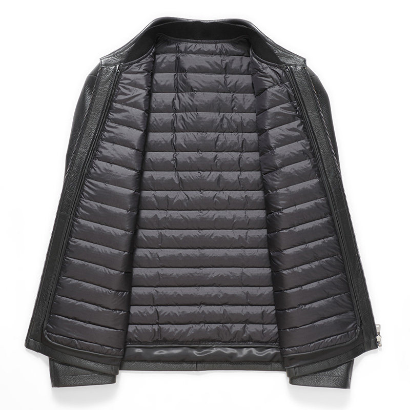 生态超纤皮+85鹅绒填充!秋冬男士机车皮衣夹克翻领皮羽绒外套潮
