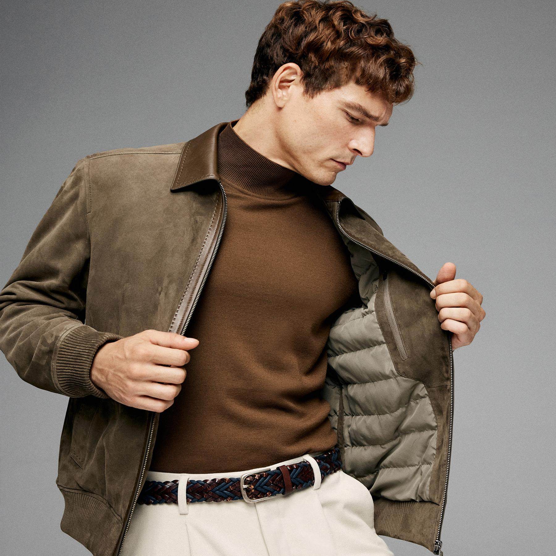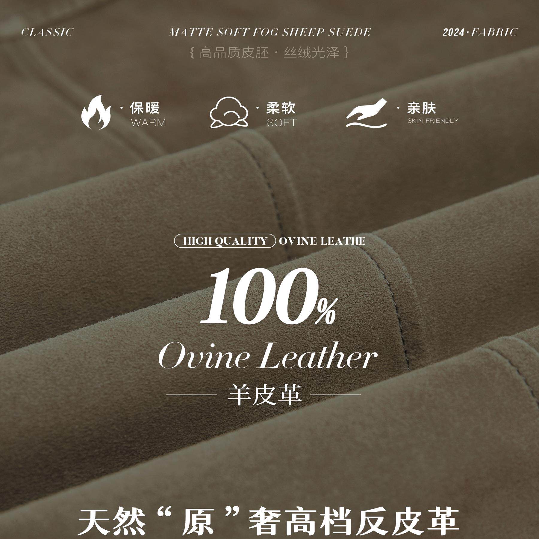 DAL140意式老钱绅士高端男士翻领皮衣,甄选优质反绒绵羊皮打造,质感细腻柔软,尽显低调奢华。经典翻领设计融合意式剪裁,线条利落,彰显成熟男士的儒雅风度。内嵌高品质羽绒内胆,保暖轻盈,兼顾风度与温度。细节考究,走线工整,金属拉链顺滑耐用,口袋设计实用美观。无论是商务出行或日常穿搭,皆能轻松驾驭,诠释“老钱风”的从容与品位。DAL140不仅是御寒外套,更是身份与格调的象征,为追求品质生活的男士提供兼具经典与舒适的穿着体验。