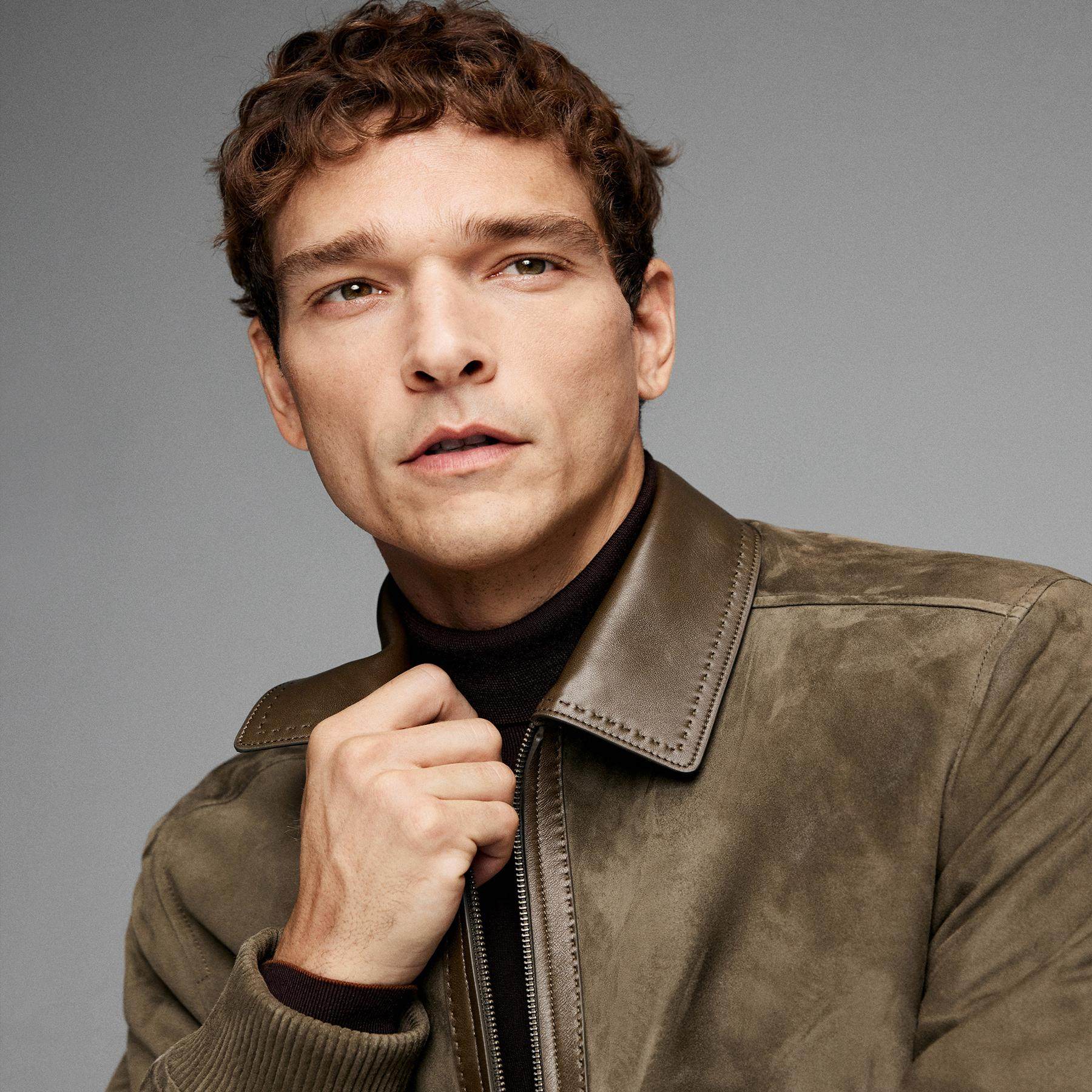 淘宝意式老钱绅士 高端反绒绵羊皮 羽绒内胆男士翻领皮衣外套 DAL140