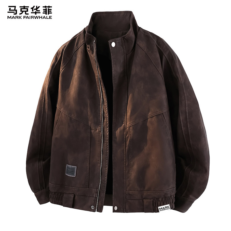 MRCYC美拉德风复古麂皮绒皮衣外套男冬季韩系宽松高级感加厚夹克