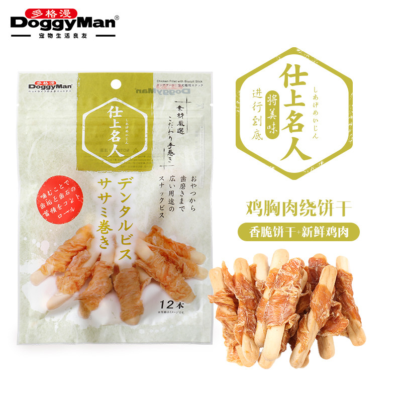 天猫日本多格漫名仕系列磨牙饼干鸡肉卷12根 狗狗磨牙棒芝士牛筋绕肉