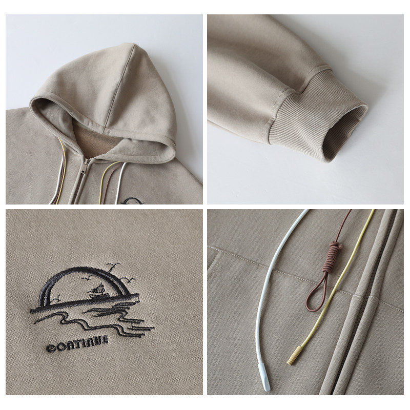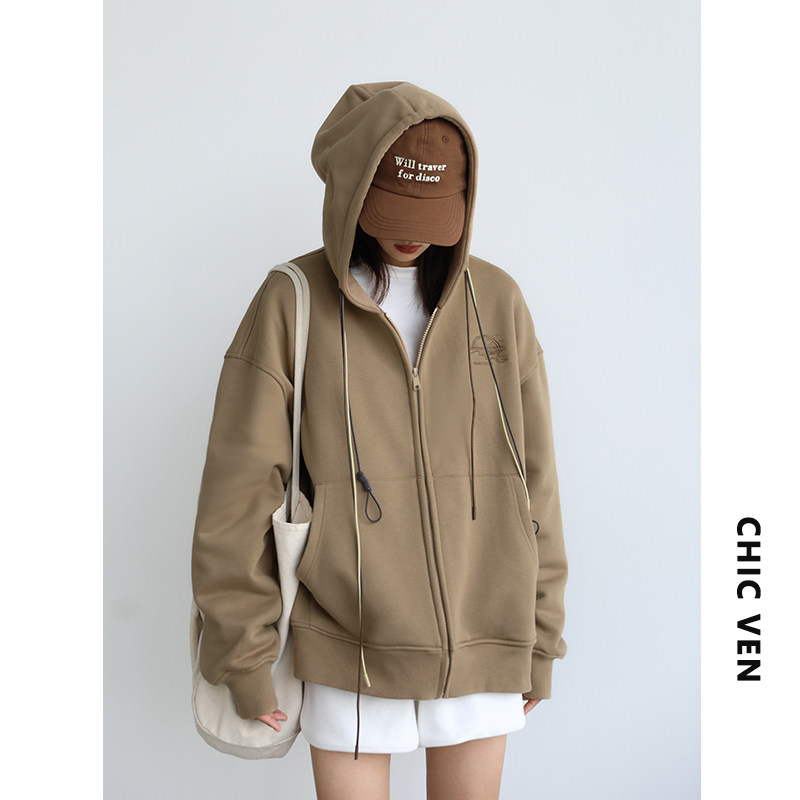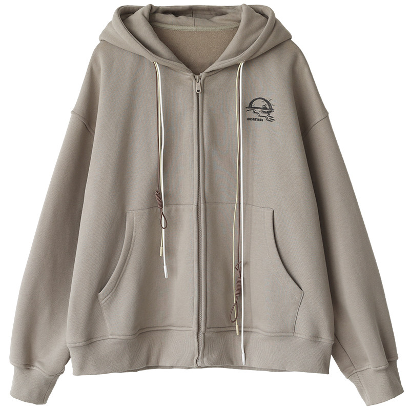 淘宝CV大码女装 秋冬新款高街感宽松多色帽绳刺绣加绒连帽卫衣外套女