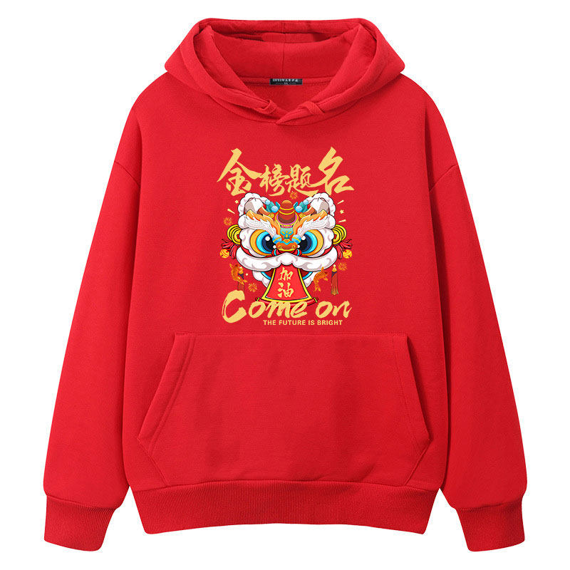 这款“逢考必过”红色长袖卫衣,专为中考、高考学子及送考团队设计,寓意吉祥、鼓舞士气。采用优质纯棉面料,舒适透气,男女同款,版型宽松百搭。胸前醒目印制“金榜题名”“逢考必过”等励志标语,搭配祥云、锦鲤等吉祥元素,寄托美好祝愿。红色象征好运与热情,既是考生专属战袍,也适合班级集体定制为班服或送考服,增强团队凝聚力。无论是考前激励,还是考场外加油助威,这件卫衣都能传递信心与力量,陪伴学子冲刺梦想,助力每一场重要考试旗开得胜!
