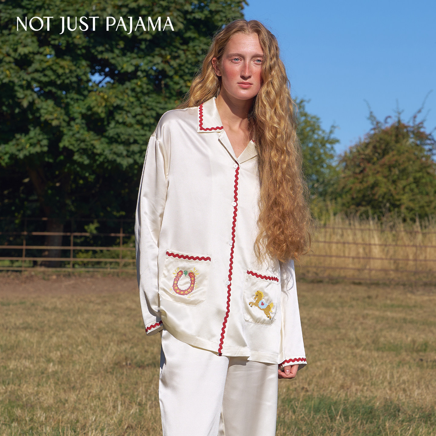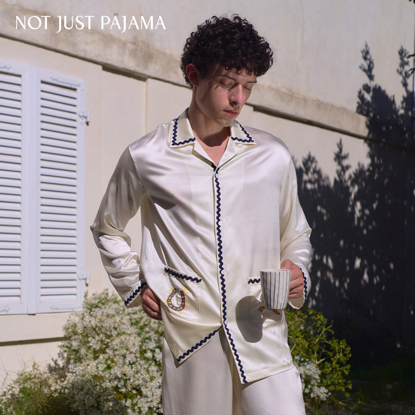 天猫丁程鑫同款】Not Just Pajama 真丝撞色波浪织带情侣款长袖睡衣