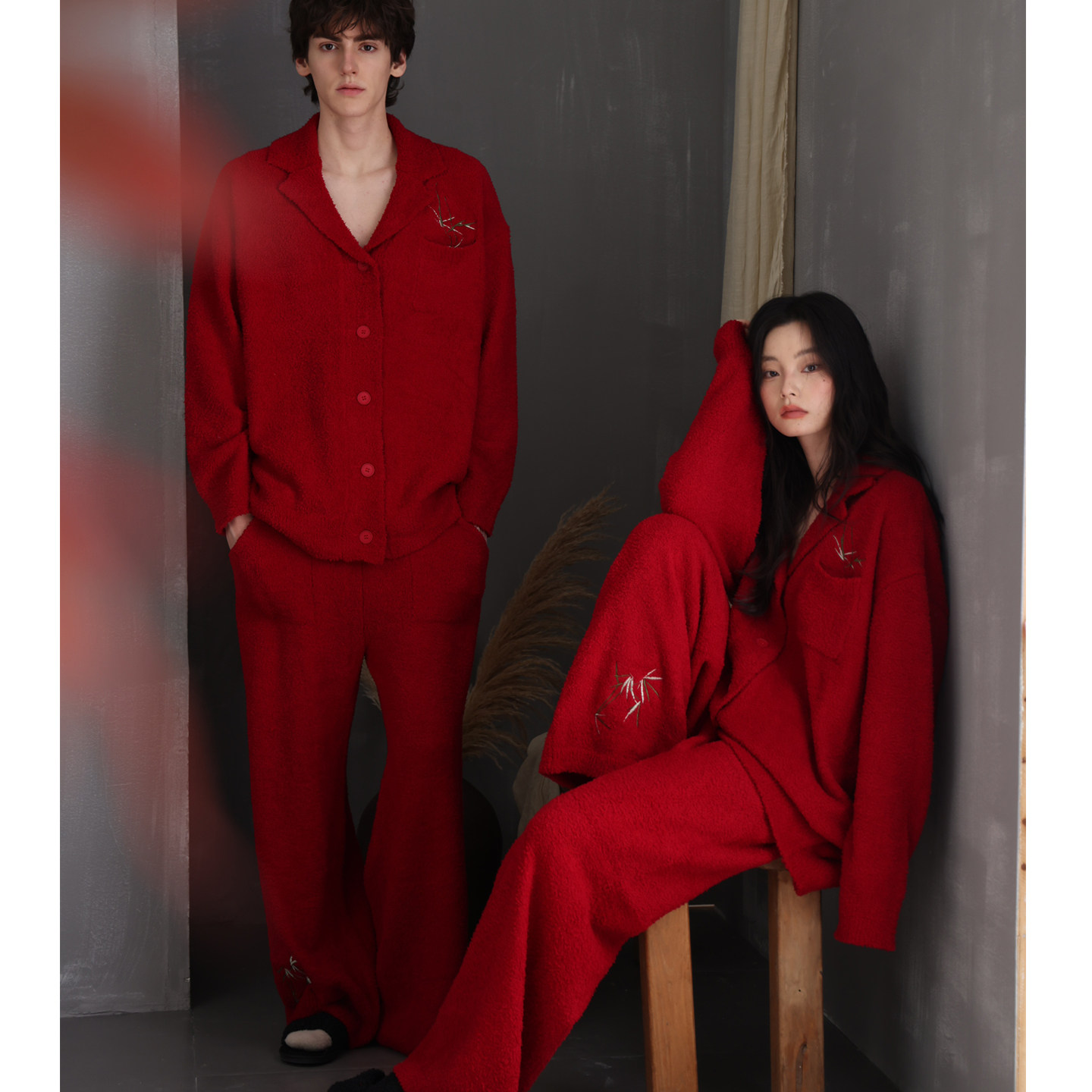 猫人2025新款“半边绒”红色睡衣情侣套装,专为新婚夫妇打造,融合浪漫与舒适。采用高级半边绒面料,柔软亲肤,保暖透气,完美适配秋冬季节。经典中国红主色调,寓意喜庆吉祥,搭配简约剪裁与精致细节,彰显高级质感。男女同款设计,版型宽松舒适,居家、睡眠皆宜,既是温馨婚房必备,也是节日送礼佳选。无论是二人世界还是拍摄情侣写真,都能洋溢甜蜜氛围。猫人以匠心工艺与时尚美学,为新婚生活增添温暖与仪式感,让爱意在日常中悄然升温。