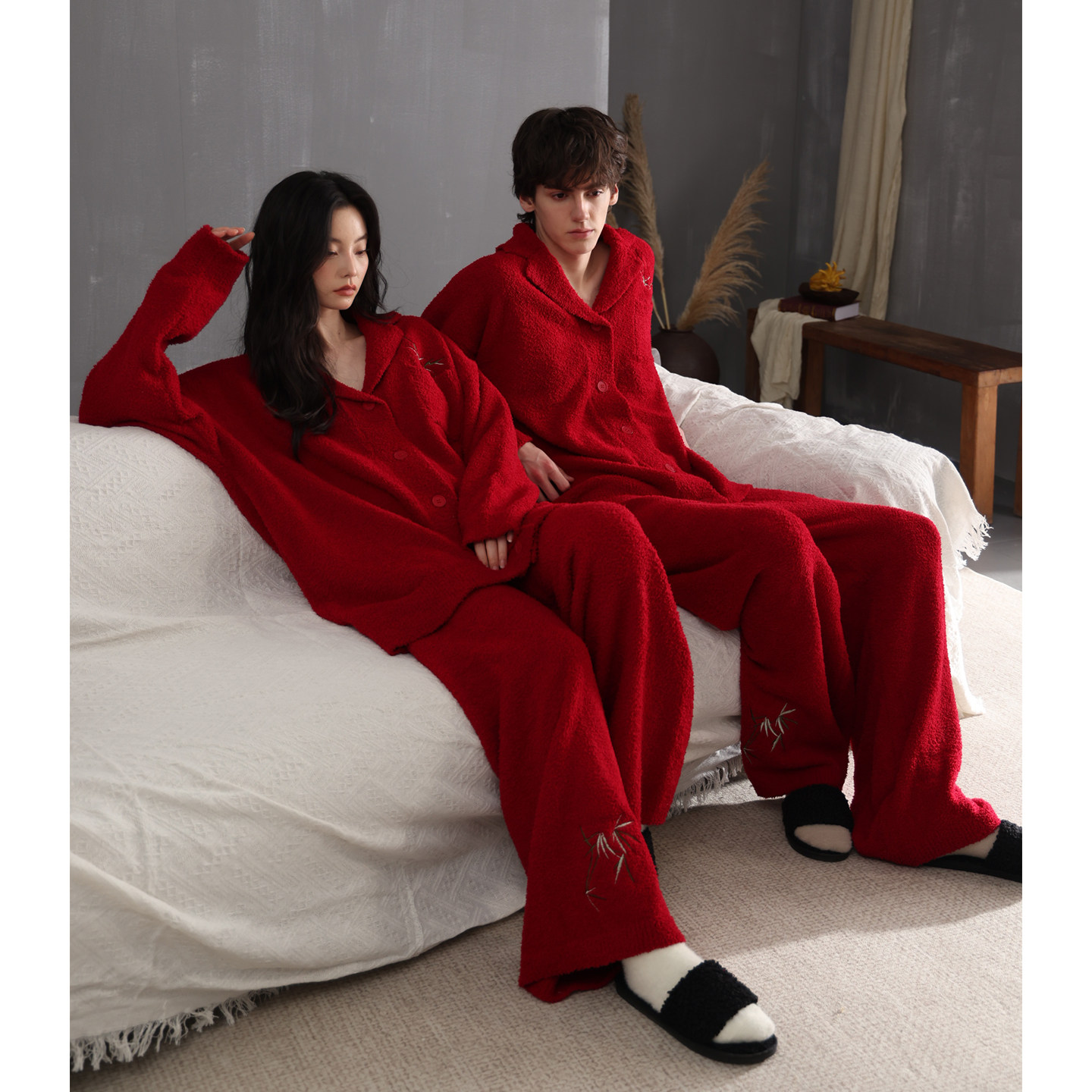 轩靓【抗静电】情侣睡衣女冬本命年仿羊羔绒红色马年家居服男套装