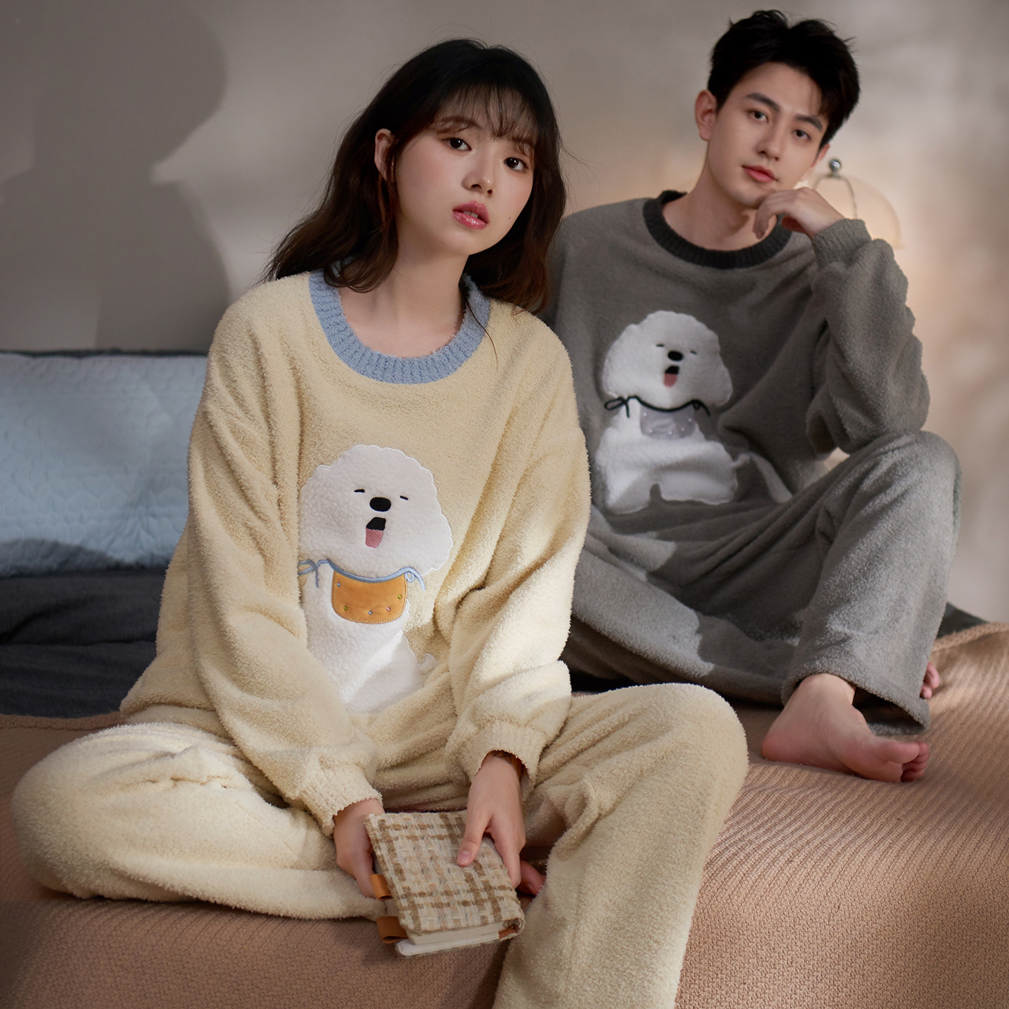 淘宝马克公主情侣睡衣女款加厚趣味小狗秋冬男士保暖毛茸茸家居服冬天