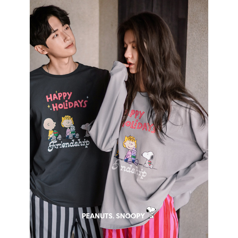 天猫贝妍史努比情侣睡衣女春秋新款柔软莫代尔棉家居服男大码长袖套装