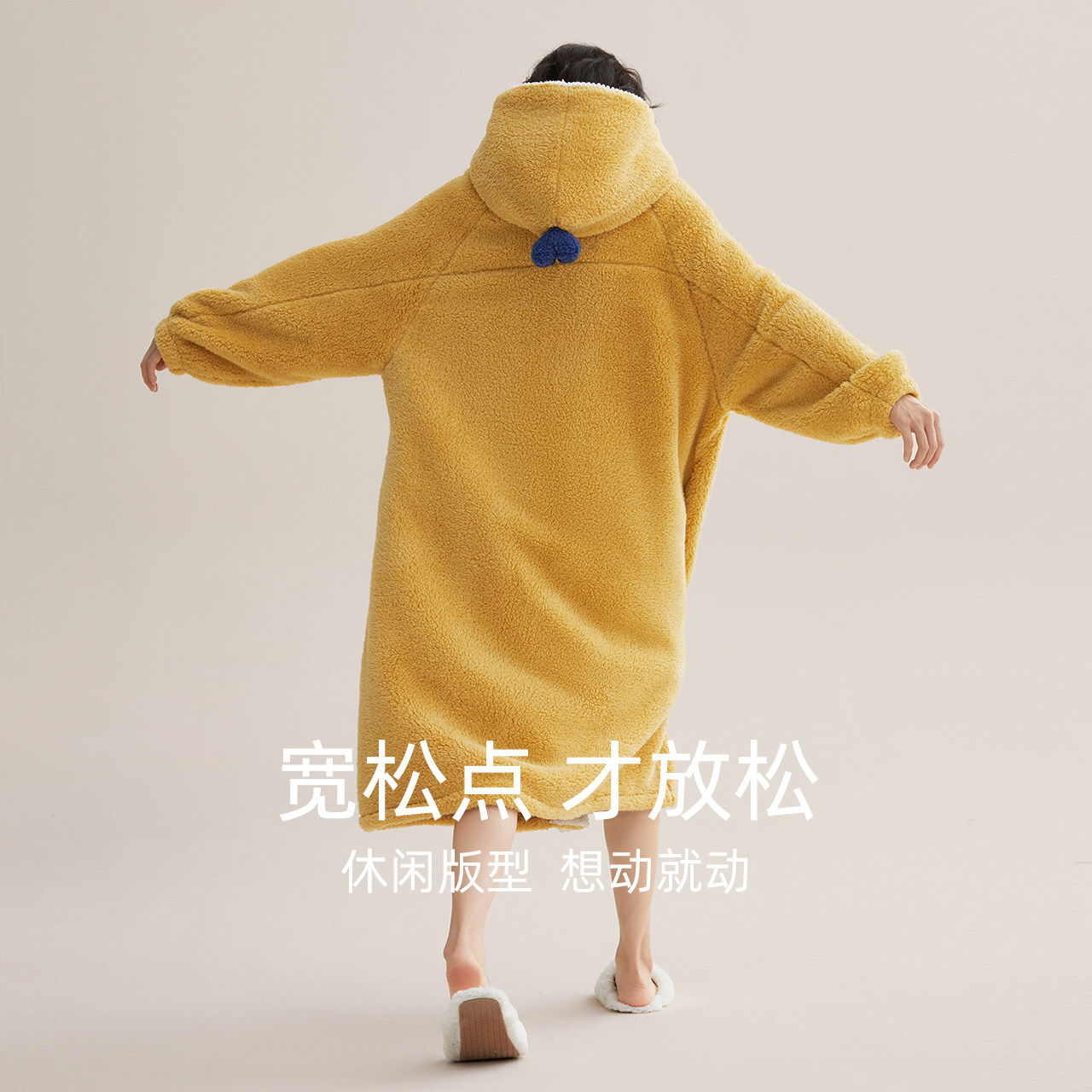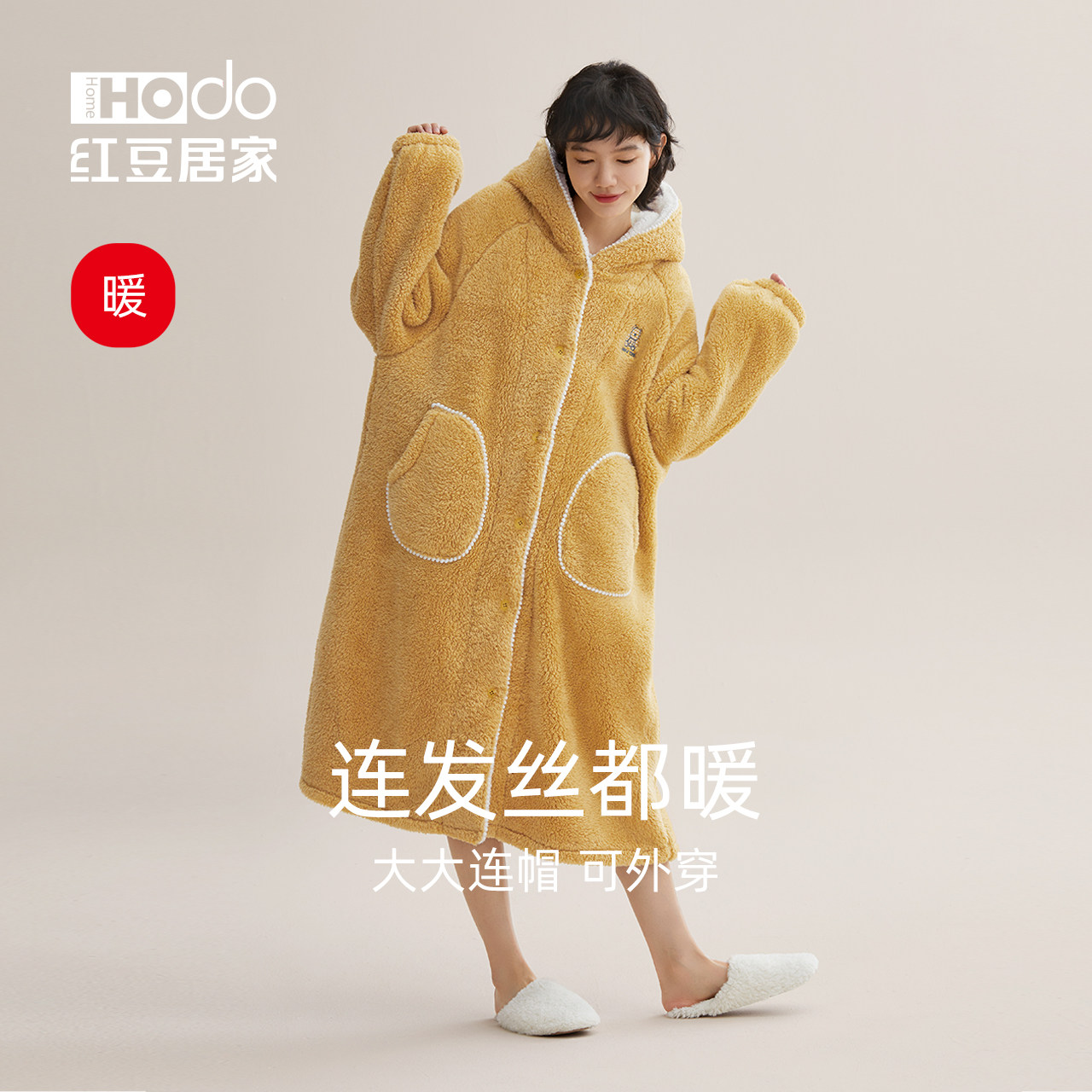天猫【暖暖绒】红豆居家情侣睡袍女秋冬季珊瑚绒可外穿加厚连帽睡衣男
