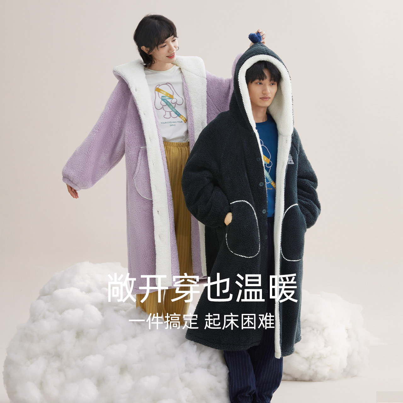 全棉时代睡衣家居服男女士情侣套装抗静电磨毛保暖绒绒家居服