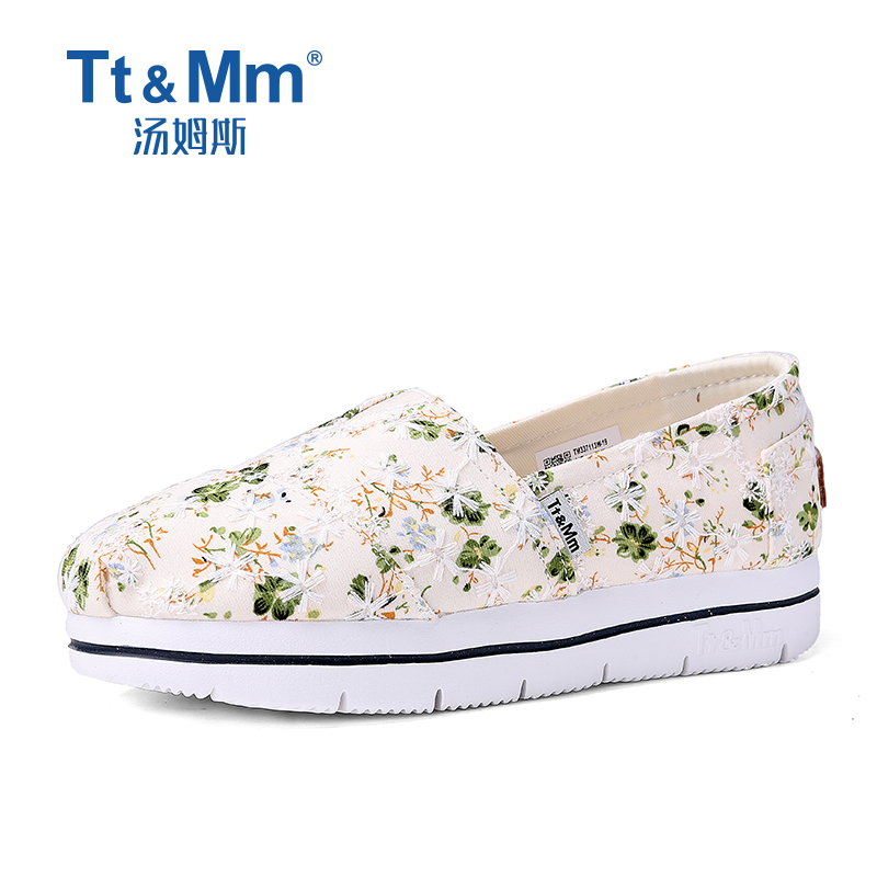 天猫Tt&Mm/汤姆斯小香风厚底增高帆布鞋女懒人春季新款一脚蹬休闲布鞋