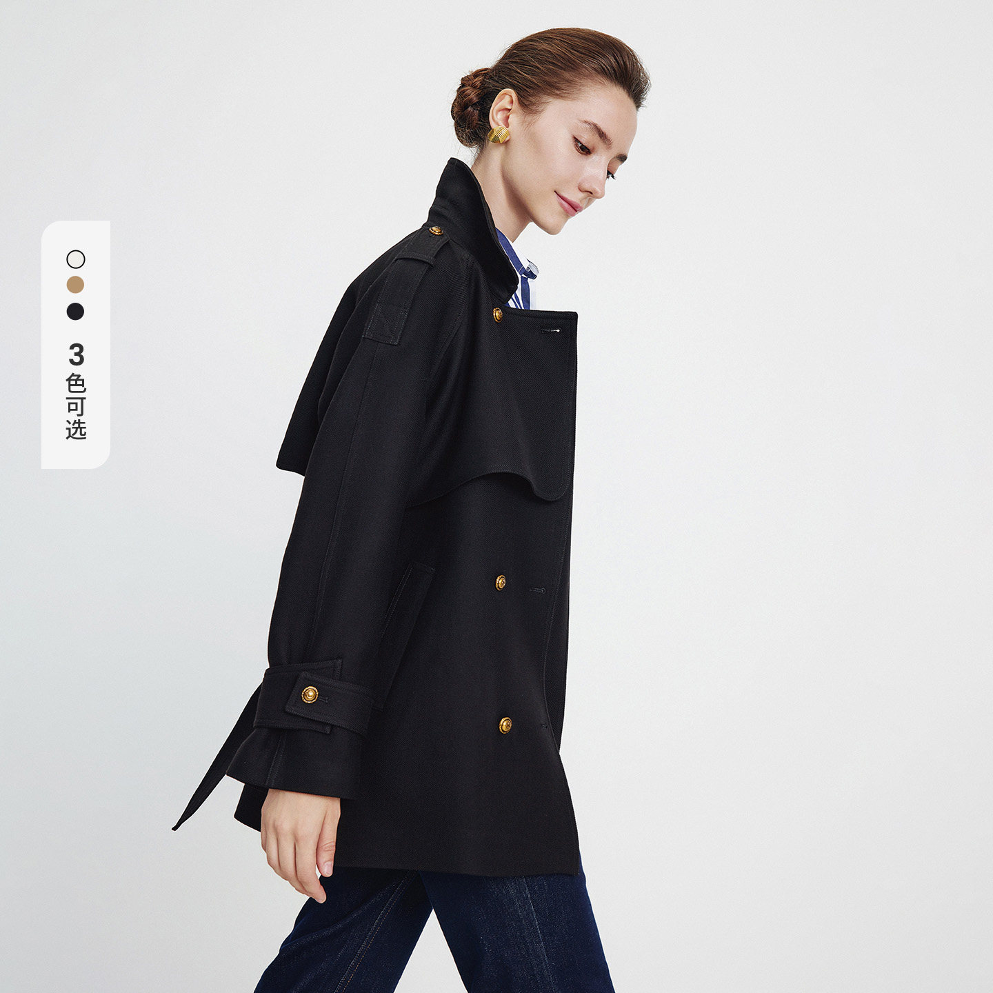 YBAI/亦白 2026春季新款时尚简约气质百搭袖口翻边撞色风衣外套女
