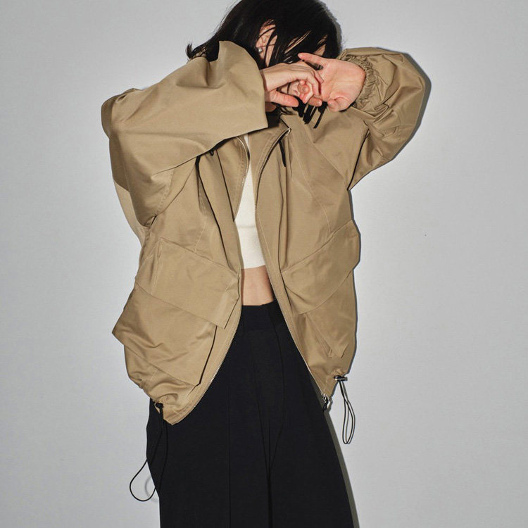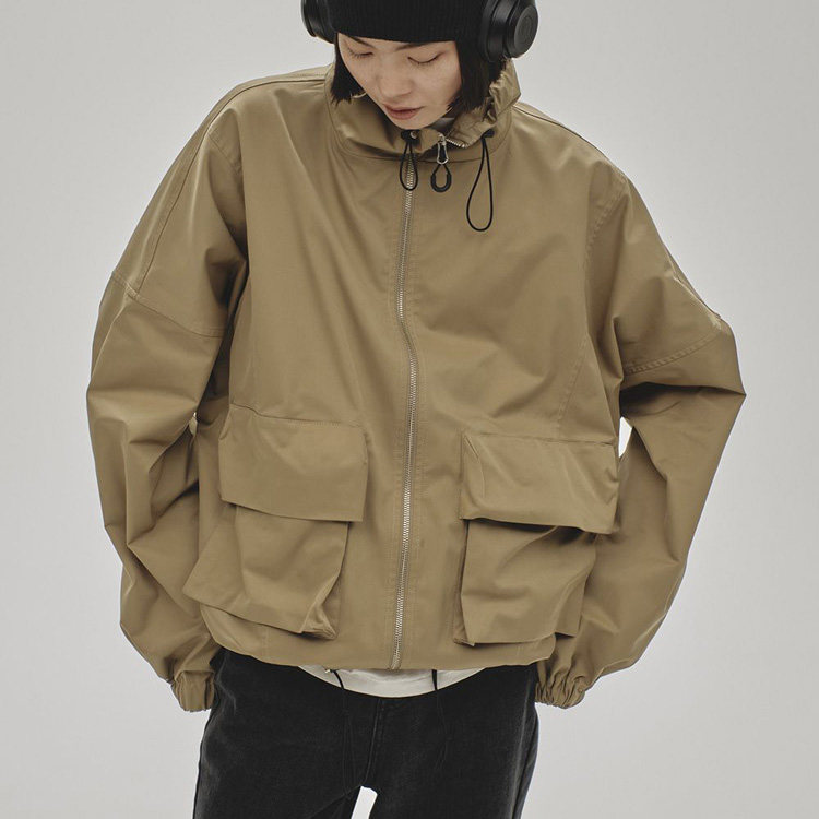淘宝Todayful简洁立领 梭织斜纹肌理 立体大口袋抽绳 短风衣 夹克外套