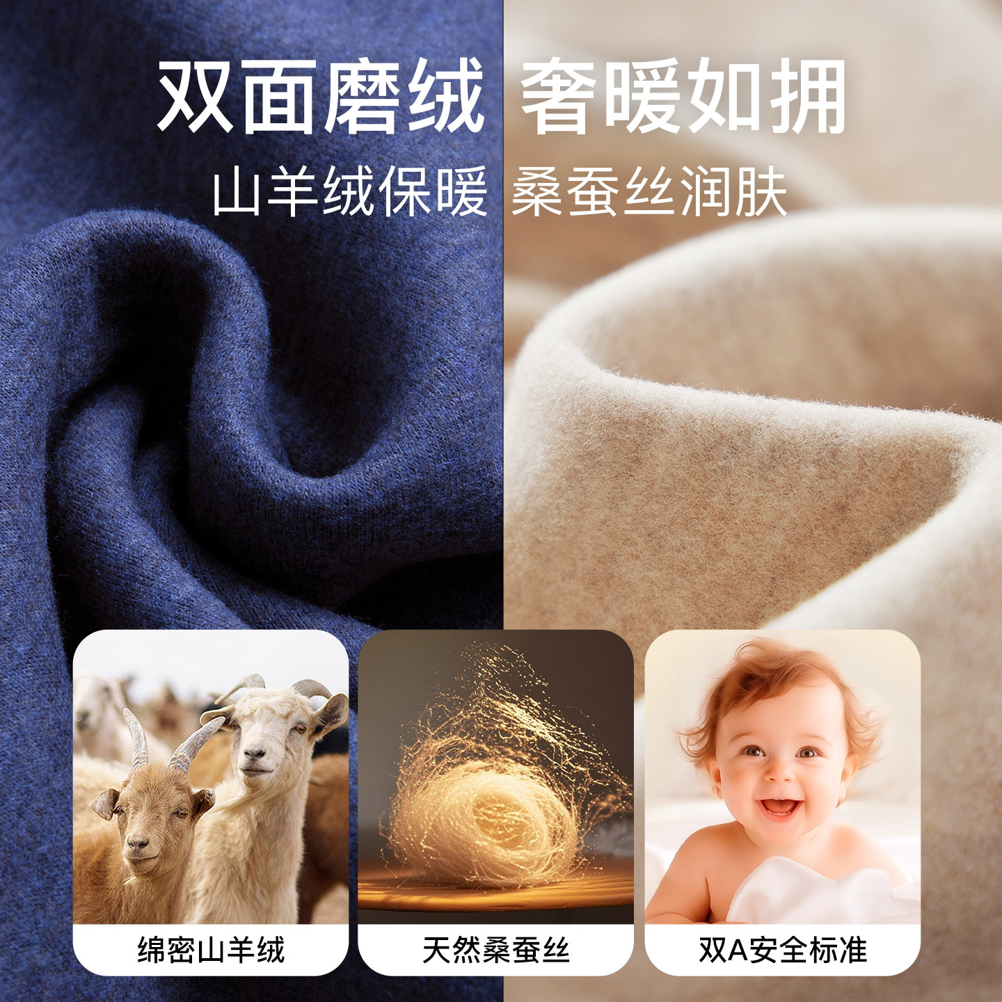 天猫双面磨绒德保暖内衣男款含羊绒蚕丝发热保温男士秋衣秋裤套装冬季