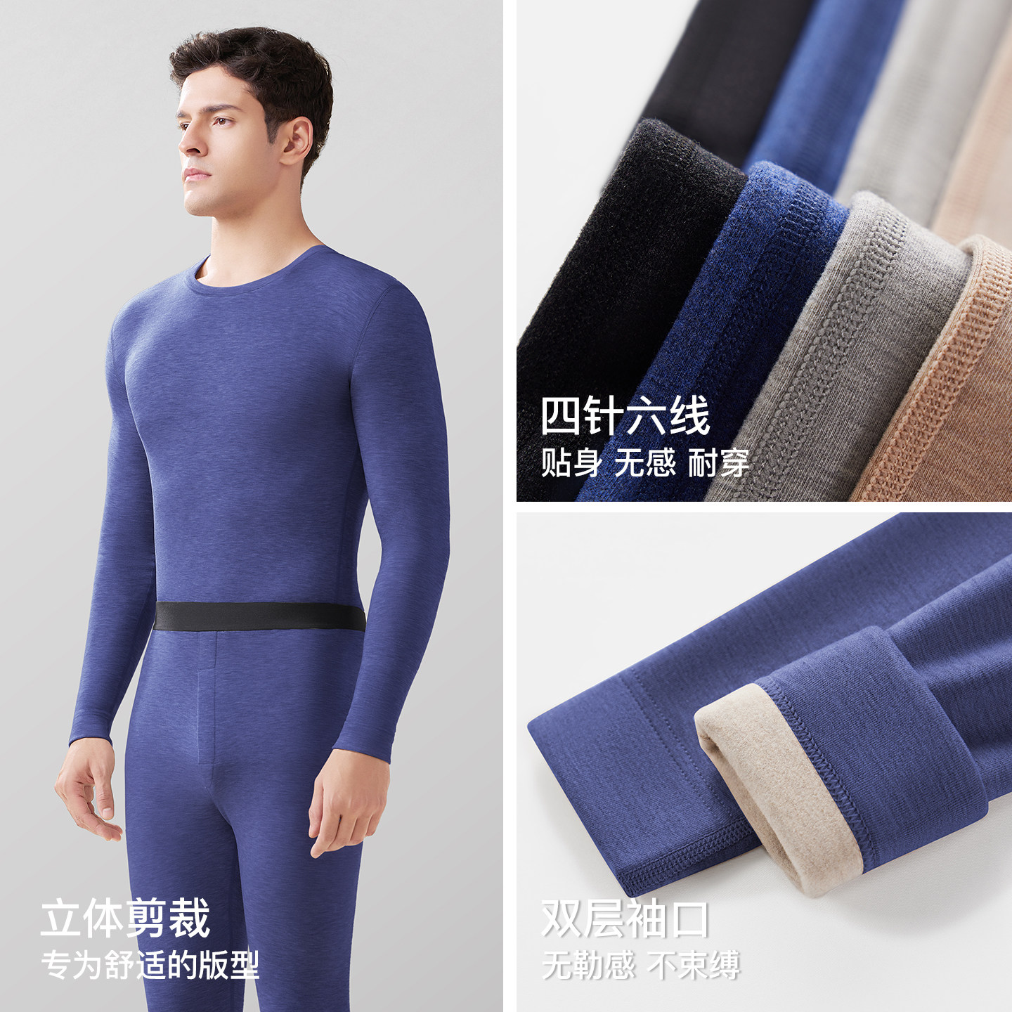 淘贝莱娅9131秋冬羊绒蛋白暖肤衣通勤修身圆领男士保暖套装秋衣秋裤